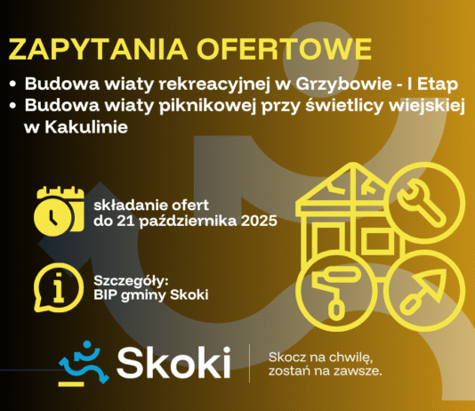 Gmina Skoki poszukuje wykonawców przygotowanie terenu do budowy wiat w Grzybowie…