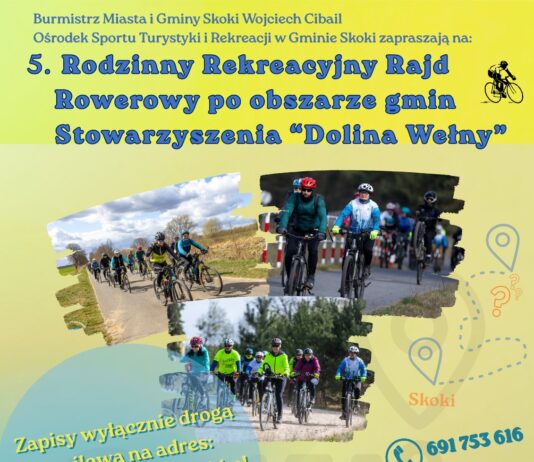 Zapraszamy do udziału w 5. Rodzinnym Rekreacyjnym Rajdzie Rowerowym po obszarze gmin Stowarzyszenia „Dolina Wełny”