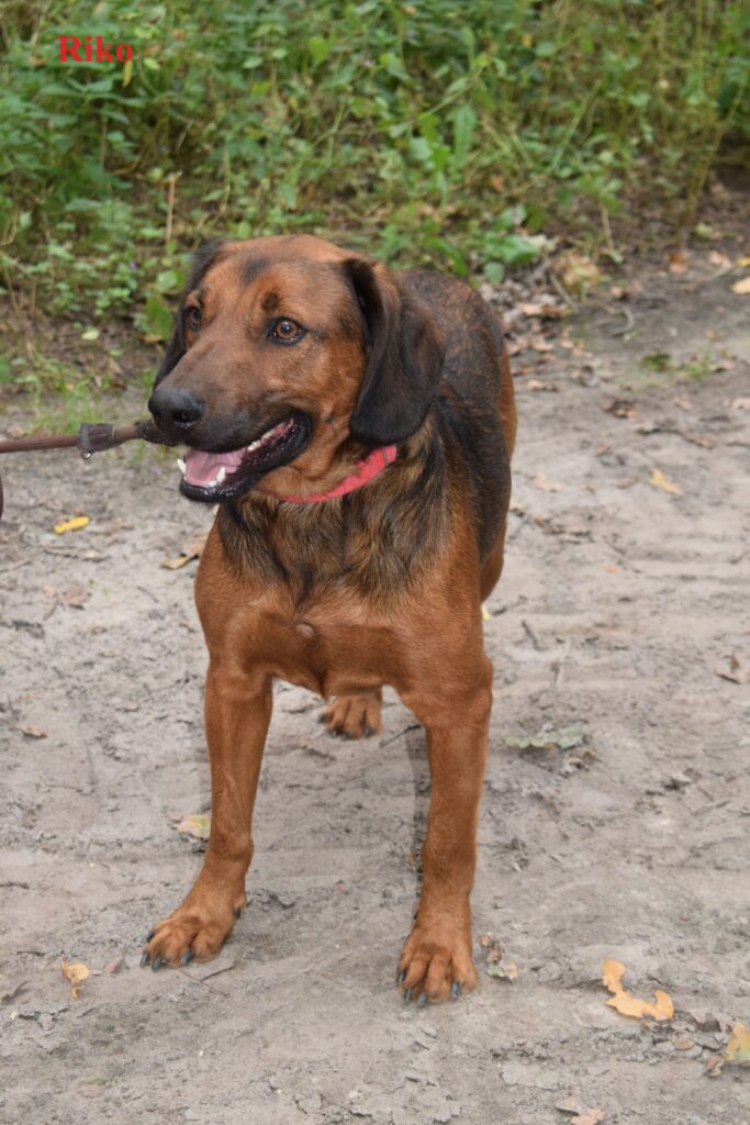 Riko to bardzo przyjazny i łagodny pies, jest średniego wzrostu i bardzo lubi się przytulać. Ładnie chodzi na smyczy i dobrze dogaduje się z psami.
