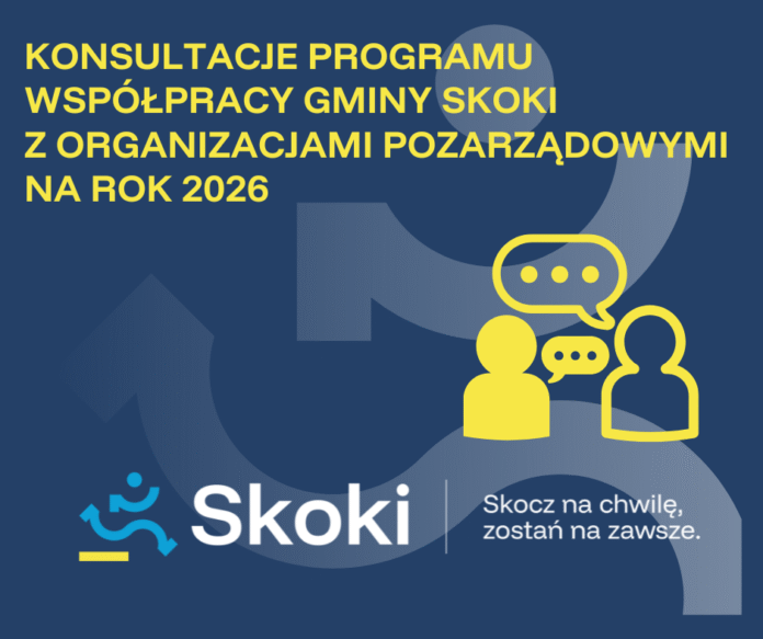 Link do ogłoszenia: https://skoki.nowoczesnagmina.pl/kategorie/251-program-wspolpracy-z-organizacjami-pozarzadowymi-/artykuly/947-ogloszenie-konsultacji-w-sprawie-przyjecia-programu-wspolpracy-gminy-skoki-z-organizacjami-pozarzadowymi-oraz-podmiotami-o-ktorych-mowa-w-art-3-ust-3-ustawy-z-dnia-24-kwietnia-2003-r-o-dzialalnosci-pozytku-publicznego-i-o-wolontariacie-na-rok-2026?lang=PL