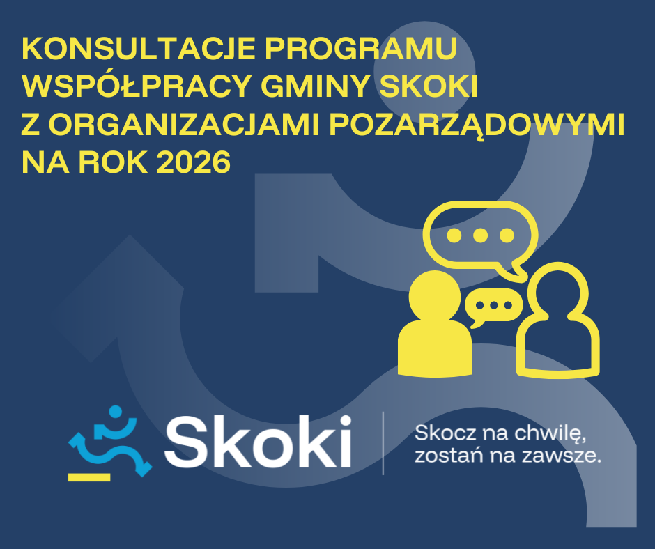 Burmistrz Miasta i Gminy Skoki przeprowadza konsultacje projektu uchwały dotyczącej przyjęcia Programu współpracy Gminy Skoki z organizacjami pozarządowymi oraz podmiotami, o których mowa w art. 3 ust. 3 ustawy z dnia 24 kwietnia 2003 r. o działalności pożytku publicznego i o wolontariacie na rok 2026. Szczegółowe informacje dostępne są w poniższym linku.