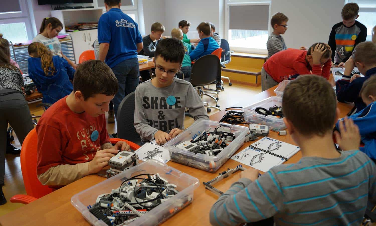 W czasie tych dwóch tygodni Bibliostarszaki nie tylko były goszczone, ale również same zamieniły się w gospodarzy. Wszystko za sprawą grupy LEGO MINDSTORMS, która zawitała do biblioteki. Dzieci świetnie odnalazły się w sali po brzegi wypełnionej klockami. Okazało się, że niektórzy to urodzeni konstruktorzy.