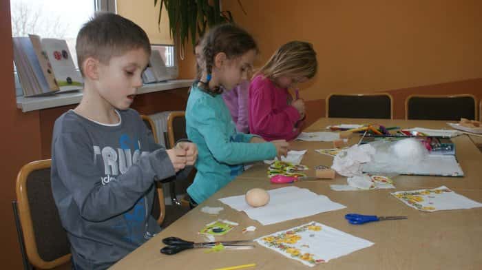Z okazji zbliżających się Świąt Wielkiej Nocy, w piątkowe popołudnie 22 marca, w sali Biblioteki Publicznej Miasta i Gminy w Skokach odbyło się spotkanie pt. „Rodzinne zdobienie świątecznych jajek”. Impreza zorganizowana została w ramach cyklu spotkań rodzinnych „Do biblioteki z mamą i tatą”.