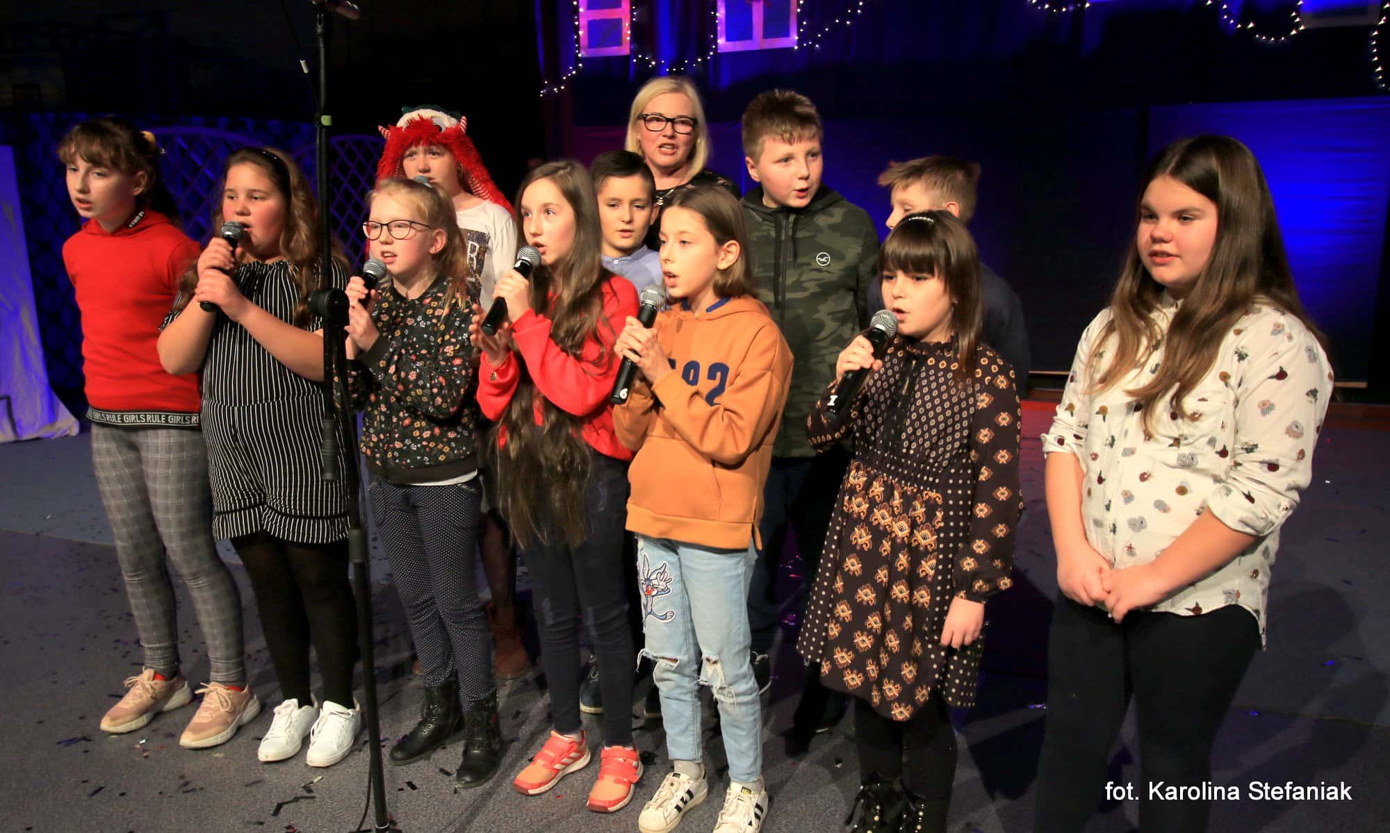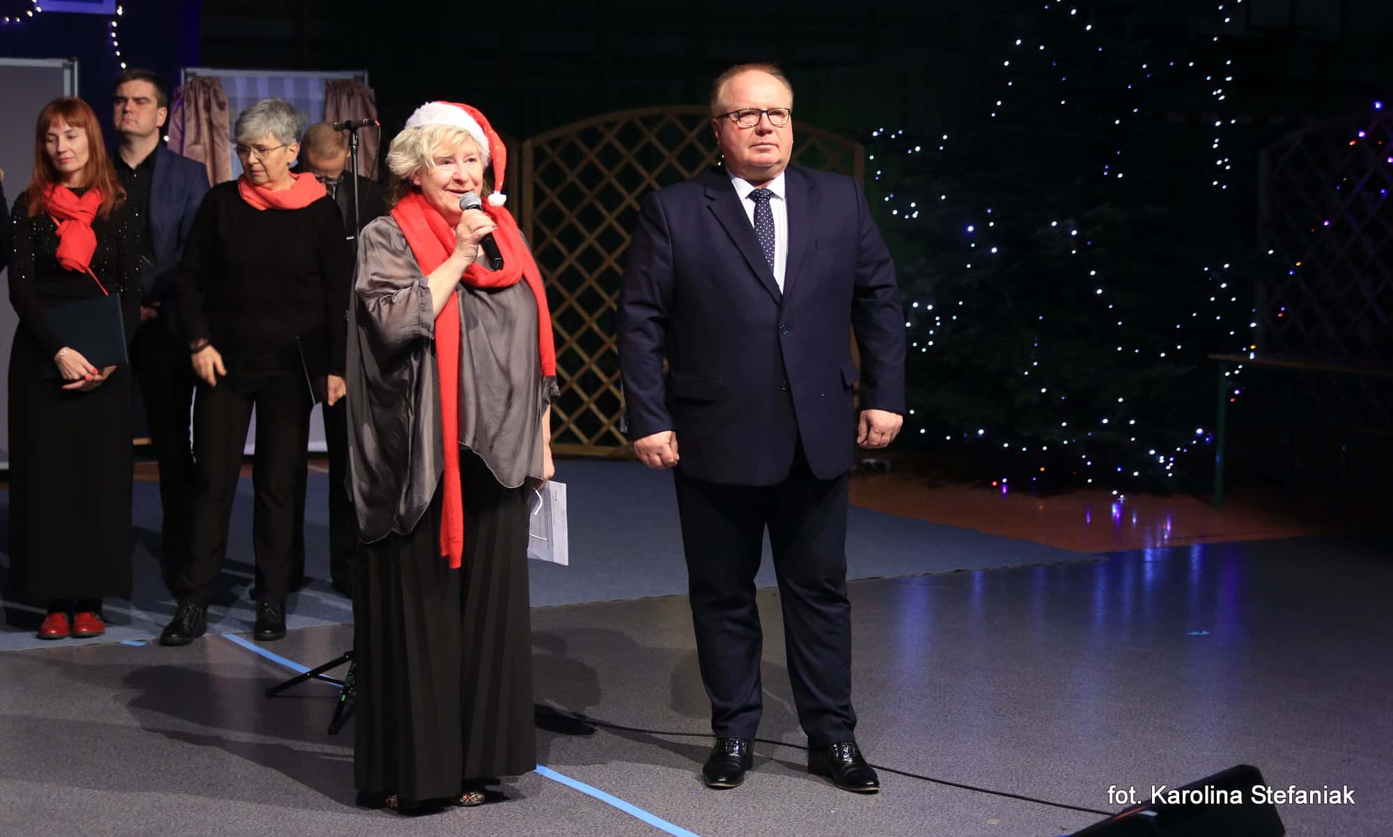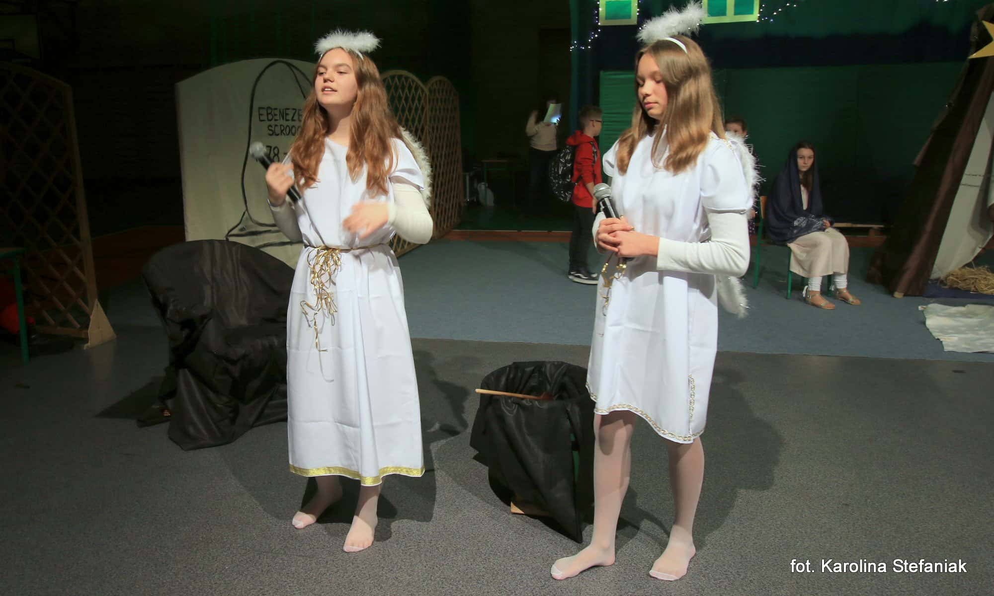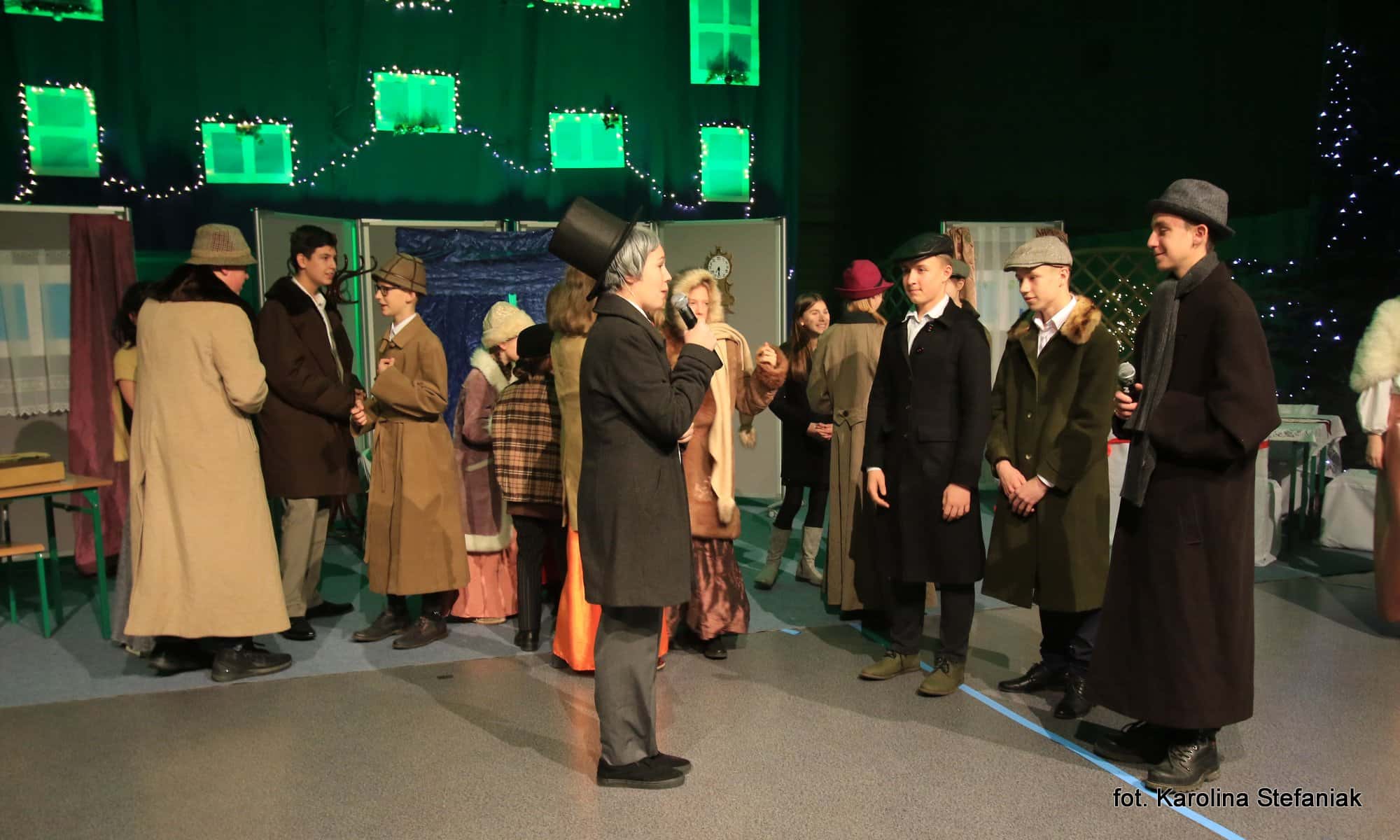 Aby umilić czas licznie przybyłym gościom uczniowie pod profesjonalnym okiem nauczycieli przygotowali dwa przedstawienia: „Opowieść wigilijna” w reżyserii Magdaleny Jeske, Agaty Orzechowskiej i Barbary Surdyk oraz „Jasełka” w reżyserii Lidii Miczyńskiej, Doroty Mrozińskiej i Wiolety Grzegorzewskiej. Na scenie oprócz naszych uczniów zaprezentowali się także lokalni artyści. Można było podziwiać m.in. młode gimnastyczki ze Studia Gimnastyki Artystycznej „Feniks”, które prowadzi Jarosława Biłorusowa-Fertsch, a także uśmiechnięte, roztańczone i rozśpiewane dziewczęta z Grupy Artystycznej „Skoczki” pod kierunkiem Małgorzaty Wiśniewskiej oraz Katarzyny i Jacka Duksztów. Mogliśmy usłyszeć przepiękny głos solisty Macieja Kujawy, profesjonalne śpiewy skocko-wągrowieckiego Chóru Kameralnego pod dyrekcją Andrzeja Kaliskiego, jak również niezawodny i emanujący pozytywną energią Emerycki Zespół Śpiewaczy „Harfa” Antoniego Wiśniewskiego oraz Orkiestrę Dętą Ochotniczej Straży Pożarnej w Skokach pod batutą kapelmistrza Artura Pokorzyńskiego.