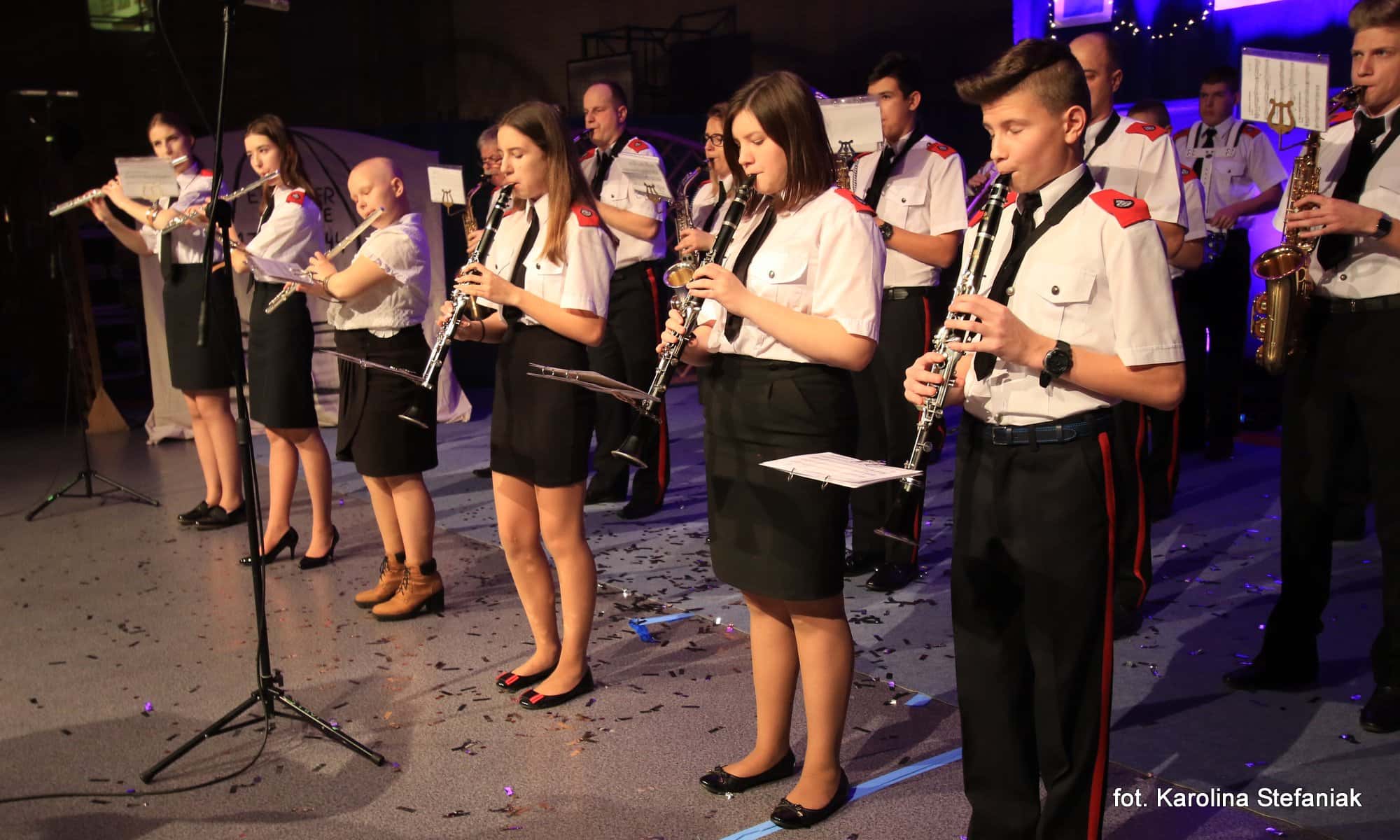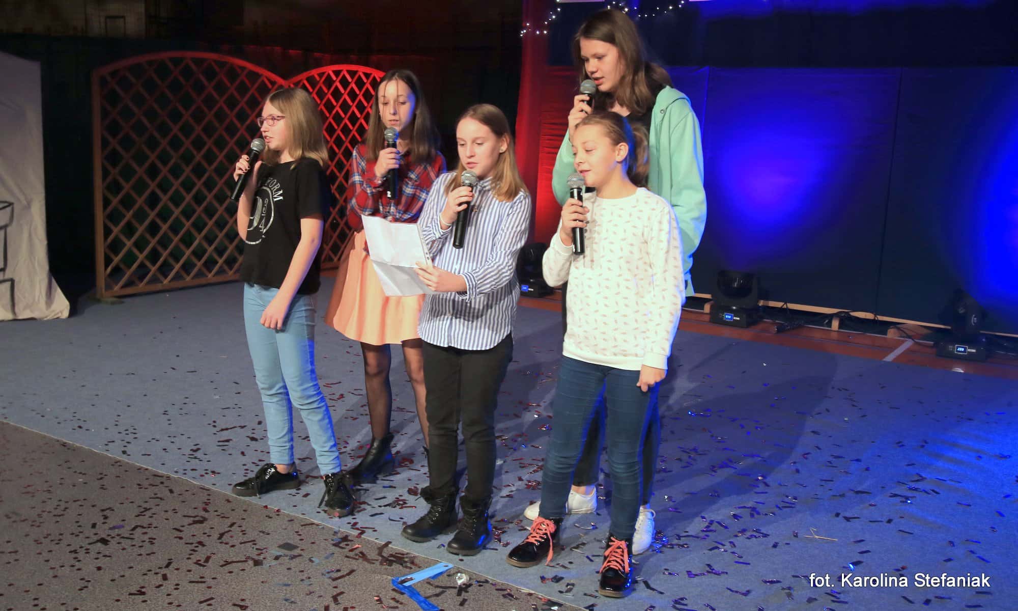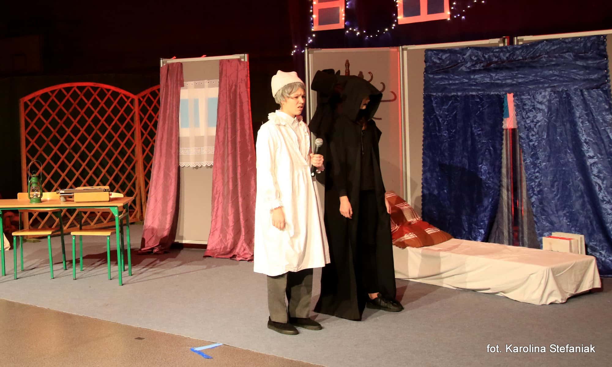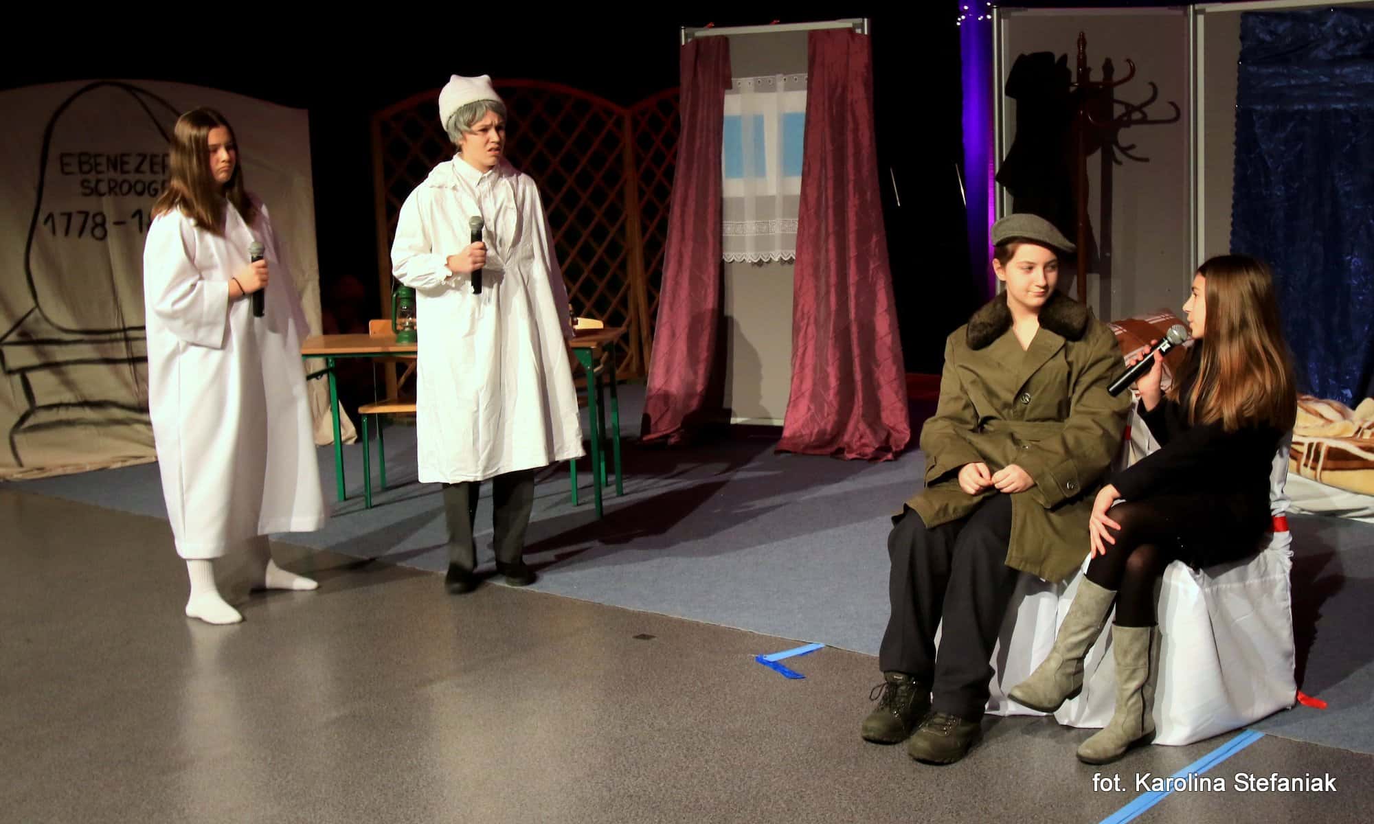 Aby umilić czas licznie przybyłym gościom uczniowie pod profesjonalnym okiem nauczycieli przygotowali dwa przedstawienia: „Opowieść wigilijna” w reżyserii Magdaleny Jeske, Agaty Orzechowskiej i Barbary Surdyk oraz „Jasełka” w reżyserii Lidii Miczyńskiej, Doroty Mrozińskiej i Wiolety Grzegorzewskiej. Na scenie oprócz naszych uczniów zaprezentowali się także lokalni artyści. Można było podziwiać m.in. młode gimnastyczki ze Studia Gimnastyki Artystycznej „Feniks”, które prowadzi Jarosława Biłorusowa-Fertsch, a także uśmiechnięte, roztańczone i rozśpiewane dziewczęta z Grupy Artystycznej „Skoczki” pod kierunkiem Małgorzaty Wiśniewskiej oraz Katarzyny i Jacka Duksztów. Mogliśmy usłyszeć przepiękny głos solisty Macieja Kujawy, profesjonalne śpiewy skocko-wągrowieckiego Chóru Kameralnego pod dyrekcją Andrzeja Kaliskiego, jak również niezawodny i emanujący pozytywną energią Emerycki Zespół Śpiewaczy „Harfa” Antoniego Wiśniewskiego oraz Orkiestrę Dętą Ochotniczej Straży Pożarnej w Skokach pod batutą kapelmistrza Artura Pokorzyńskiego.