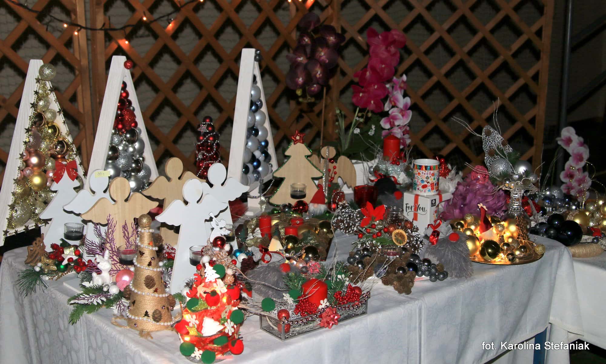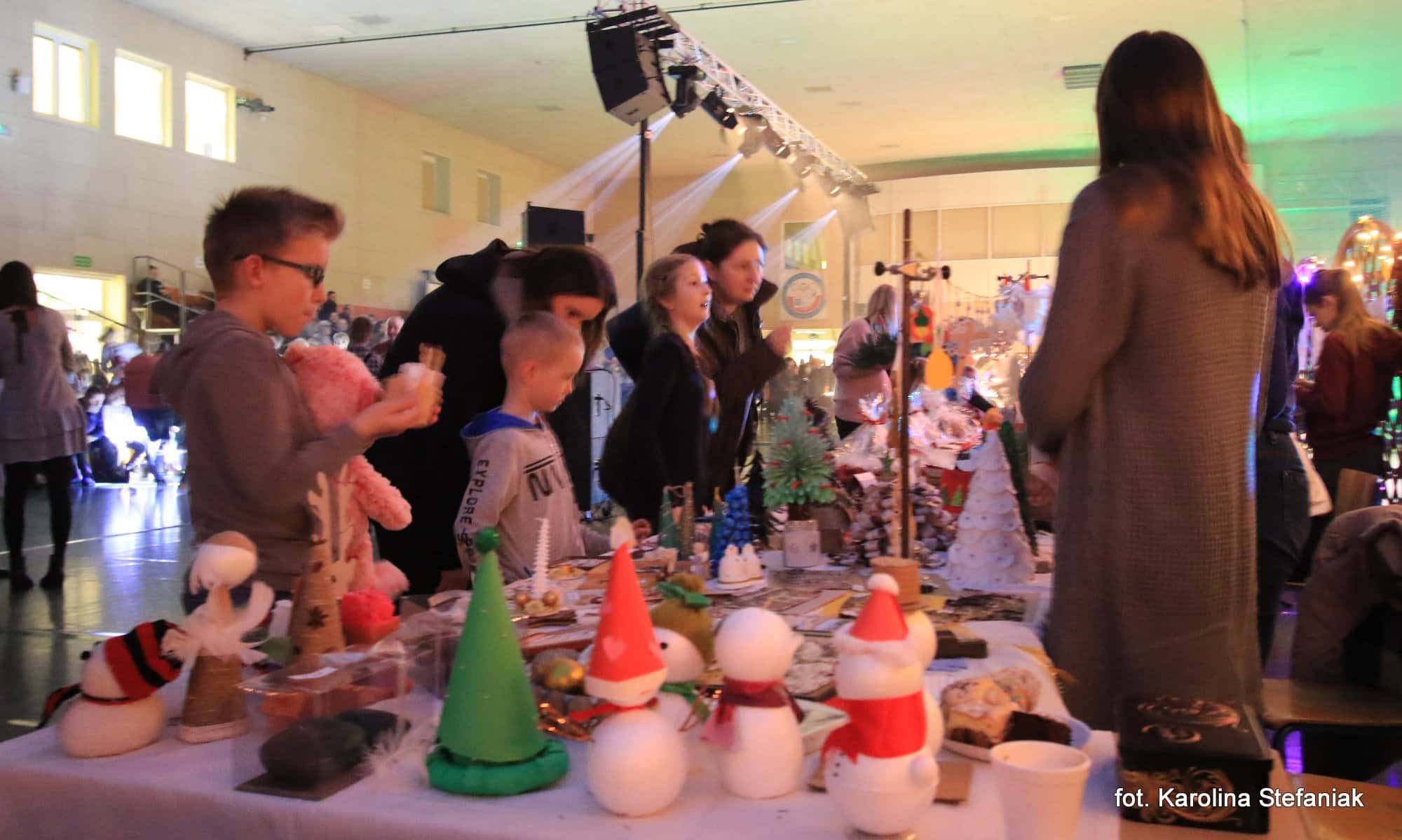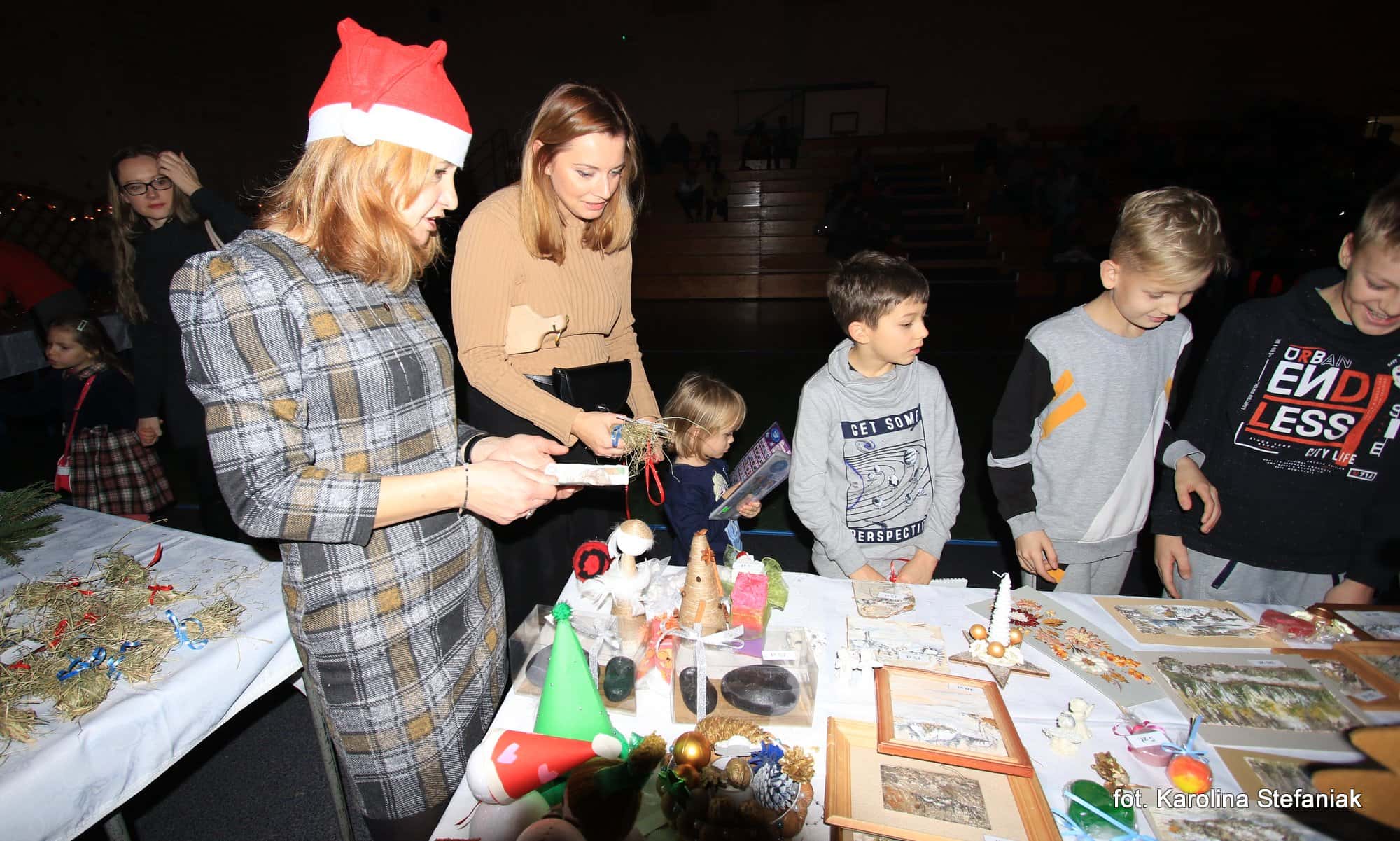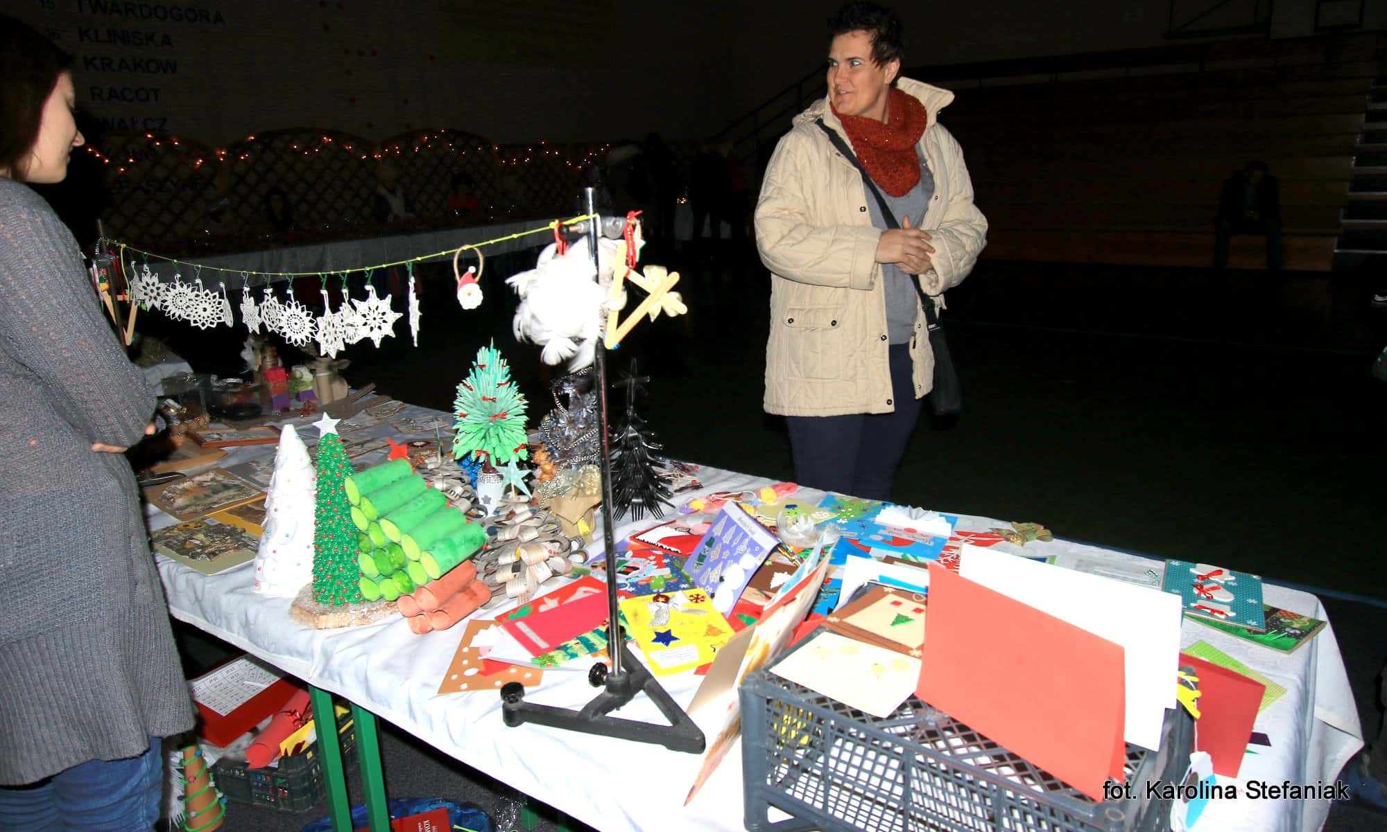 Organizatorzy zadbali, aby każdy gość jarmarku znalazł dla siebie coś dobrego. Na stoiskach z różnościami można było nabyć za niewielką cenę różnorodne, własnoręcznie wykonane przez uczniów świąteczne ozdoby, okazałe stroiki, czy kolorowe kartki. Na stoisku piernikowym można było dostać pachnące pierniki, wypiekane przez uczniów, nauczycieli i rodziców w tradycyjną już szkolną „noc piernikową”. Jak co roku ogromnym zainteresowaniem cieszyła się loteria, w której każdy los wygrywał. Dzięki hojności licznych sponsorów, wśród losów były m.in. lekcje jazdy konnej, wizyty w gabinetach piękności, choinki, tort, wełniane szaliki i skarpetki, zabawki i liczne ozdoby. Nie zapomniano także o najmłodszych uczestnikach imprezy. Dla nich zostały przygotowano stoiska, przy których mogły przygotować wspaniałe świąteczne rysunki, zrobić sobie zdjęcie z Mikołajem, a nawet z nim porozmawiać.