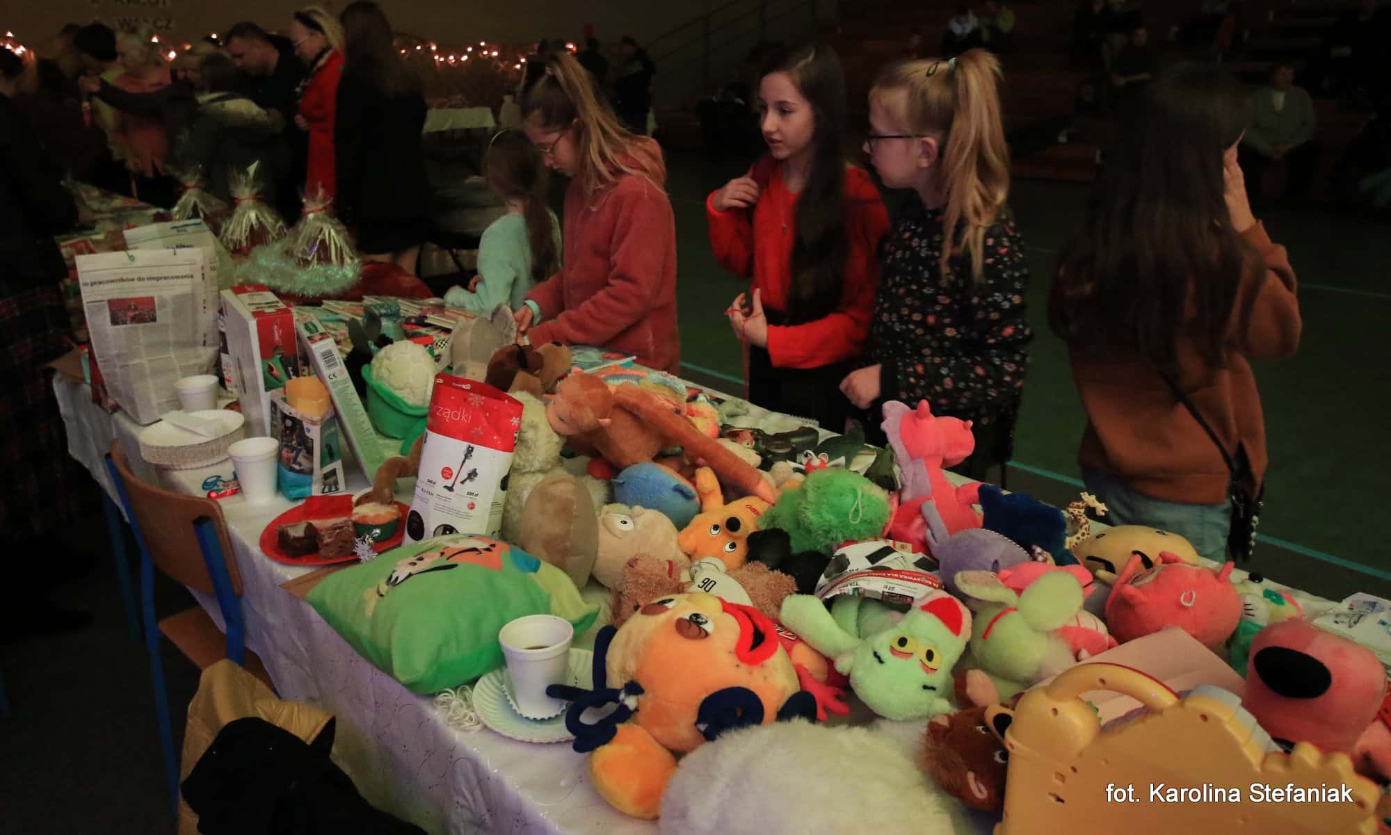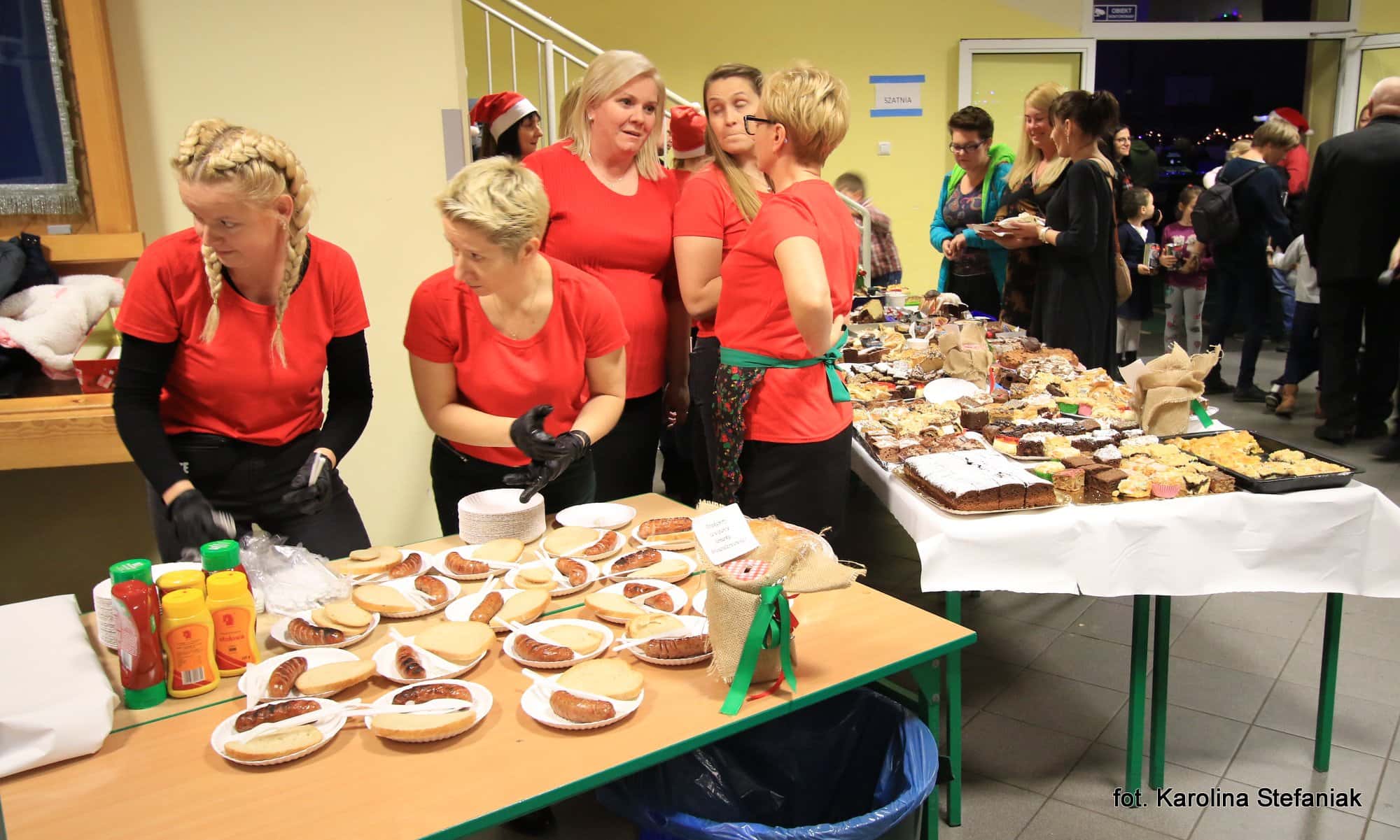 Oprócz wielu wrażeń artystyczno-duchowych organizatorzy zapewnili także moc doznań kulinarnych. W kawiarence można było skosztować przepysznych domowych ciast przygotowanych przez uczniów i rodziców, ciepłych napojów oraz grillowanych kiełbasek ufundowanych i przygotowanych przez Radę Rodziców. Wszystkie te przysmaki serwowali uśmiechnięci mikołajkowi pomocnicy w czerwonych koszulkach, którymi „dowodziła” przewodnicząca Rady Rodziców pani Joanna Andrzejewska. Hala wypełniona gośćmi chcącymi poczuć osobliwy zapach świąt, wszechobecne uśmiechy i ciepłe, życzliwe słowa świadczą o tym, że CZTERNASTY JARMARK BOŻONARODZENIOWY można zaliczyć do udanych. Należy również podkreślić, że dochód z jarmarku został w całości przeznaczony na przygotowanie paczek świątecznych dla uczniów, ich rodzin oraz starszych samotnych ludzi znajdujących się w trudnej sytuacji życiowej.