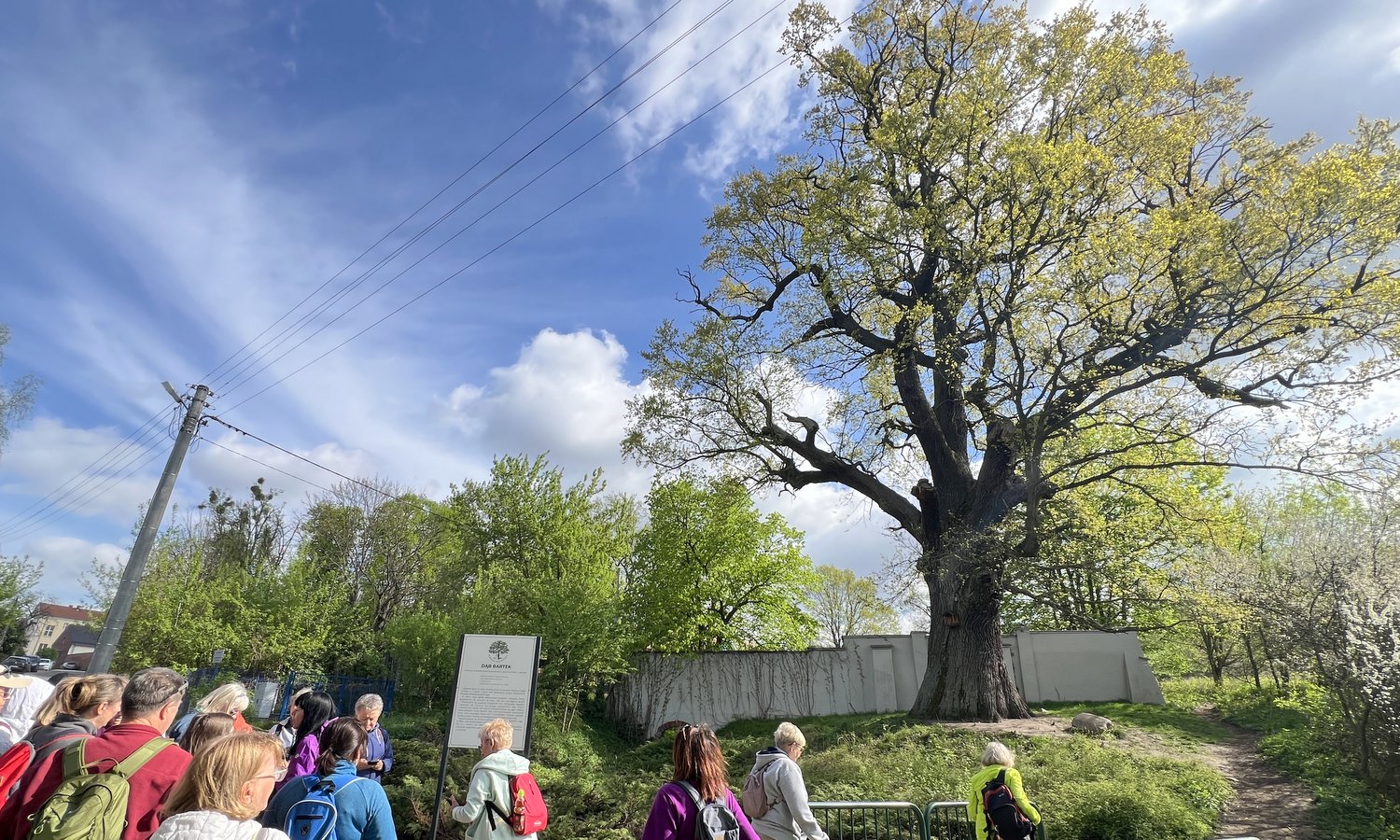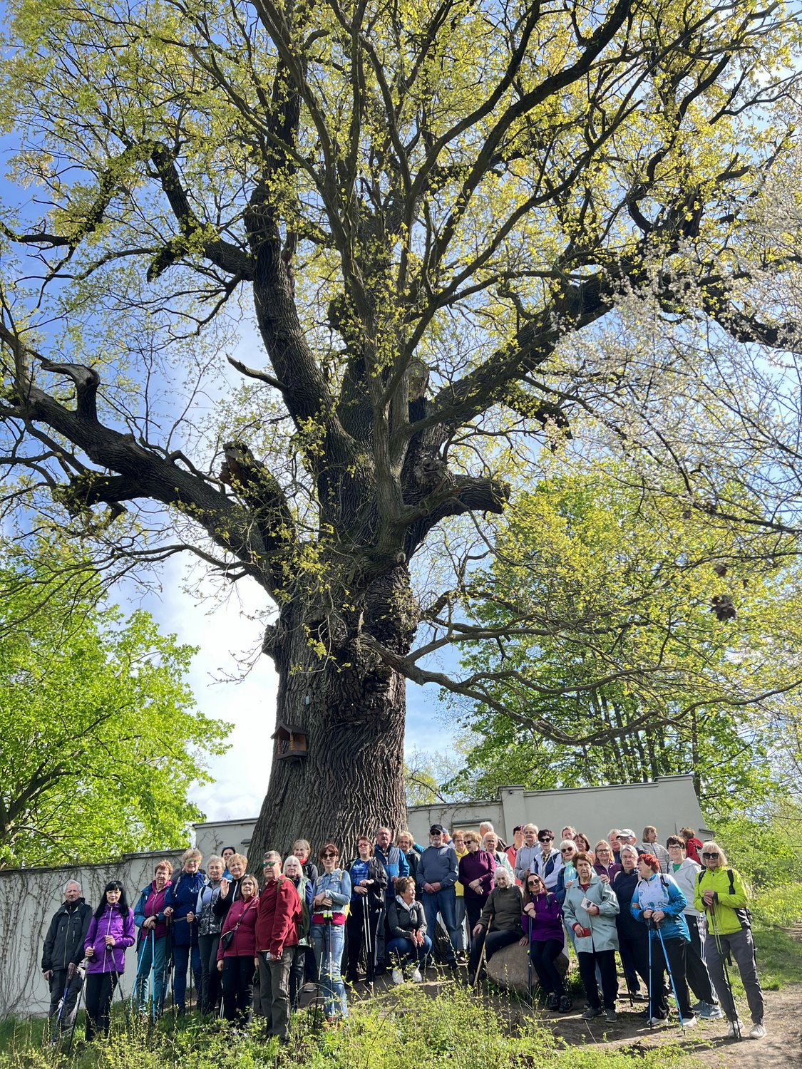 Następnie Anna Golińska, zaprzyjaźniona z naszą gminą członkini PTTK Wągrowiec, zaprosiła na spacer wiodący niedawno powstałą kładką nad rzeką Wartą do pomnika przyrody – dębu „Bartek” – i dalej do Radojewa. Tutaj podzieliła się imponującą wiedzą na temat rodu von Treskowów.