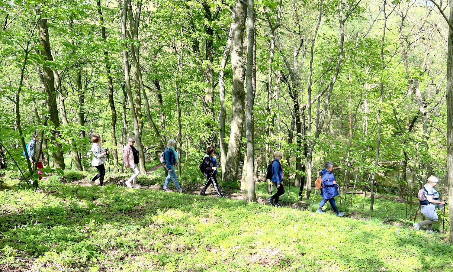 Następnie uczestnicy otoczeni piękną, wiosenną florą – pokonując spore naturalne zróżnicowanie terenu radojewskiego parku – dotarli na Krzyżową Górę a stamtąd do romantycznych sztucznych ruin, mających przypominać gotyckie budowle.