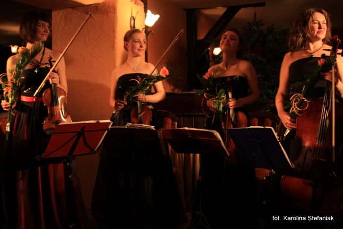 Dla publiczności wystąpił już jej znany kwartet smyczkowy Artu’S Kwartet z Poznania, a po przerwie kawowej zabrzmiał król instrumentów muzycznych – fortepian, na którym grał pan Piotr Salaber, akompaniując solistce, artystce pani Katarzynie Matuszak.
