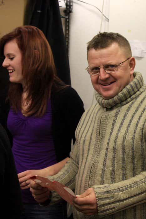– jak para prowadzących, z której po cywilnemu każdy robi coś raczej zwyczajnego robi coś nadzwyczajnego Z czasem są lepsi niż wino, frenetyczni i niezmęczalni prowadzą non stop aukcję, ciągną imprezę, wszak samo się nic nie dzieje a że się dzieje to się czuje. To już profesjonal w każdym calu – wypełnić sobą wielką salę, trzymać ludzi, którzy przepływają tam i sam trzecią i szóstą godzinę podgrzewać nastroje licytujących. Jeśli ktoś nie widział jak wygląda pani Dyrektor Gminnej Biblioteki w akcji niech przyjeżdża w styczniu do Skoków. Funduję bilet w jedną stronę!