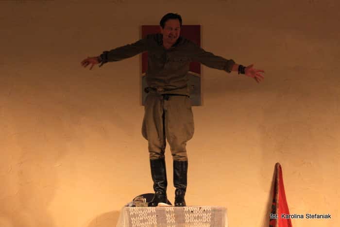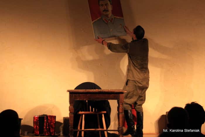 Akcja monodramu działa się na Wileńszczyźnie (wtedy Polsce), z początku wydała się widzom komedią, lecz jednak szybko przeistoczyła się w drama. Aktor- narrator w mistrzowski sposób pokazał nam podwójny dramat. Pierwszy Polski „wyzwolonej” przez Armię Czerwoną i NKWD. Drugi dramat nieświadomego, „wypranego” przez propagandę narodu rosyjskiego, dla którego nie liczy się człowiek, lecz idee „ojca narodu” i władza jego marionetek.
