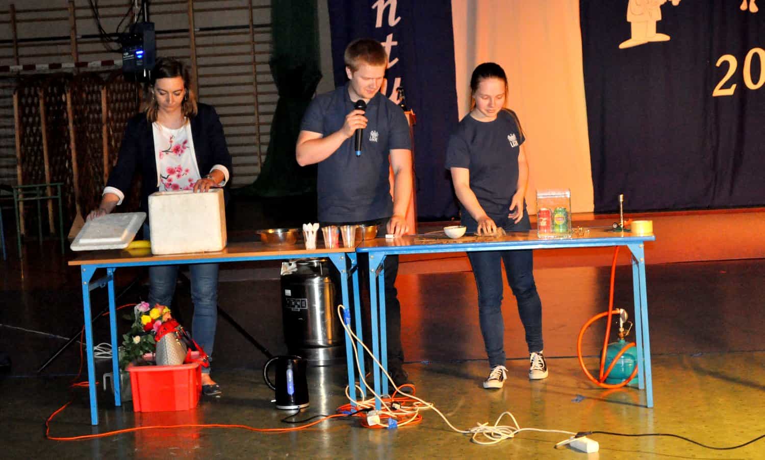 Z dużym zainteresowaniem wysłuchano prelekcji pana Tomasza Podzerka na temat pracy archeologa, a potem Studenckie Koło Naukowe Fizyków„ Fusion” z Uniwersytetu Adama Mickiewicza w Poznaniu pod kierunkiem pani Magdaleny Grajek przeprowadziło ciekawe pokazy eksperymentów z ciekłym azotem w roli głównej.