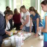 Następnie uczestnicy pikniku przystąpili do zadań projektowych. W przygotowanych salach specjaliści z różnych dziedzin prowadzili warsztaty, podczas których można było zgłębiać tajniki nauki. W świat mechatroniki pełen symulacji komputerowej i elektroniki zwiedzających wprowadzili uczniowie z Zespołu Szkół Ponadgimnazjalnych nr1 w Wągrowcu, a w świat niedocenianych przez nas pszczół – państwo Monika i Cezary Fliszkiewiczowie. Wszyscy lubiący niezwykłe historie mieli okazję spotkać się z odkrywcą średniowiecznego miasta panem Marcinem Krzepkowskim, a ci którym bliższe są podróże, z panią Małgorzatą Wojciechowską. Pracownicy Nadleśnictwa Łapuchówko przygotowali zróżnicowany repertuar przyrodniczy, który jak co roku przyciągnął wielu zainteresowanych. Licznie odwiedzana była również sala przygotowana przez pracowników Biblioteki Pedagogicznej w Wągrowcu, w której można było zobaczyć zbiór pamiątek oświatowych i wziąć udział w zajęciach z kaligrafii .