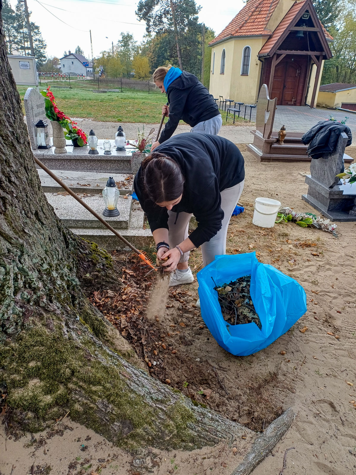 Podczas prac porządkowych, w których uczniowie chętnie uczestniczą, poznają historię, tym razem nie szkolnych ław. Żywa lekcja historii jest świetnym sposobem, by zaszczepić w młodych ludziach pamięć o Tych, których nie ma już wśród Nas.