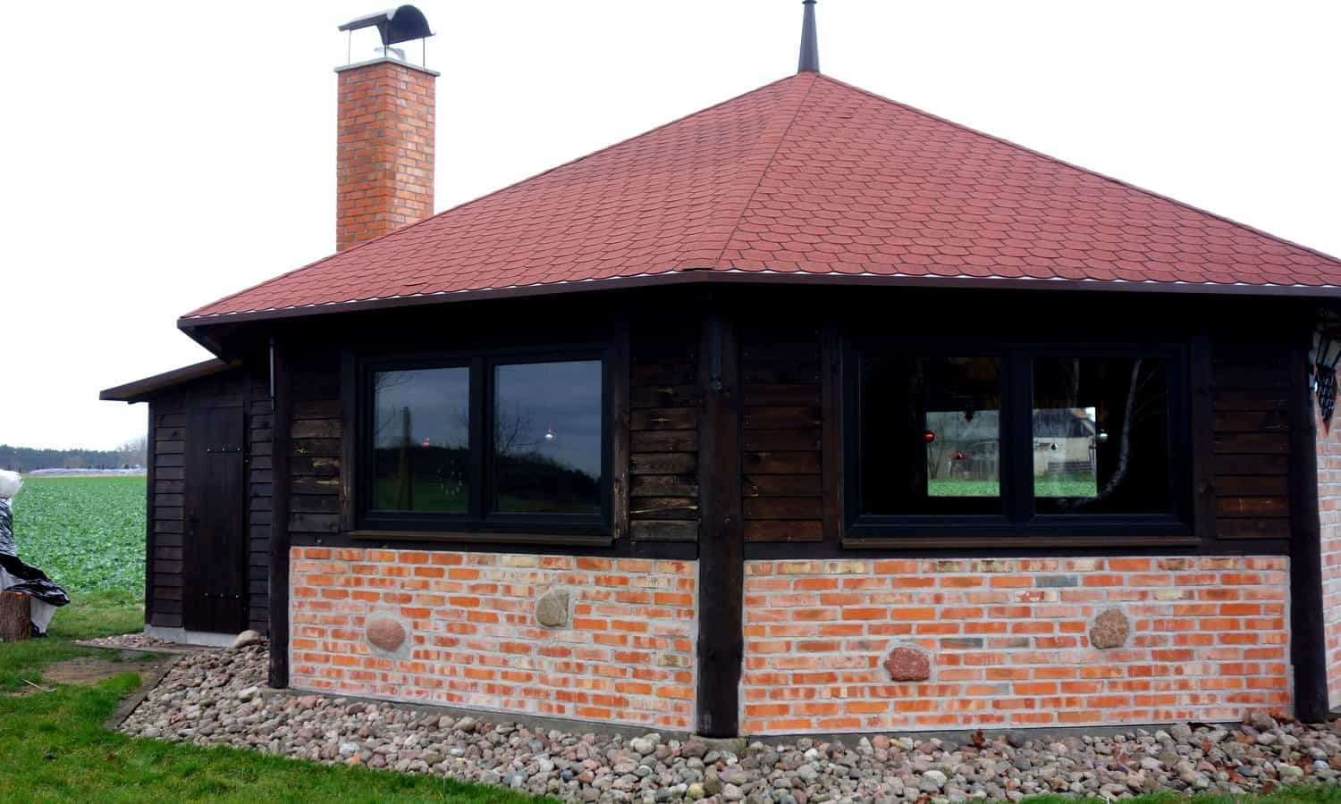 9. Kontynuacja budowy wiaty w Łosińcu objęła m.in. wykonanie więźby dachowej z deskowaniem, montaż okien, drzwi, ocieplenia ścian i ułożenie posadzki gresowej.