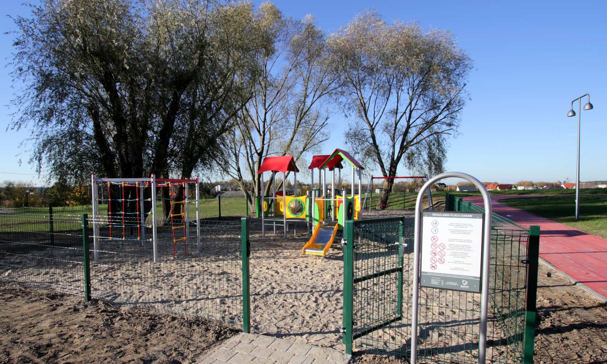 Uwzględniając propozycję mieszkańców- dodatkowo został wybudowany plac zabaw, na którym znalazły się urządzenia dostosowane do najmłodszych użytkowników. Koszt tej inwestycji wyniósł 60.000,00 zł i został w całości pokryty ze środków własnych Gminy Skoki.