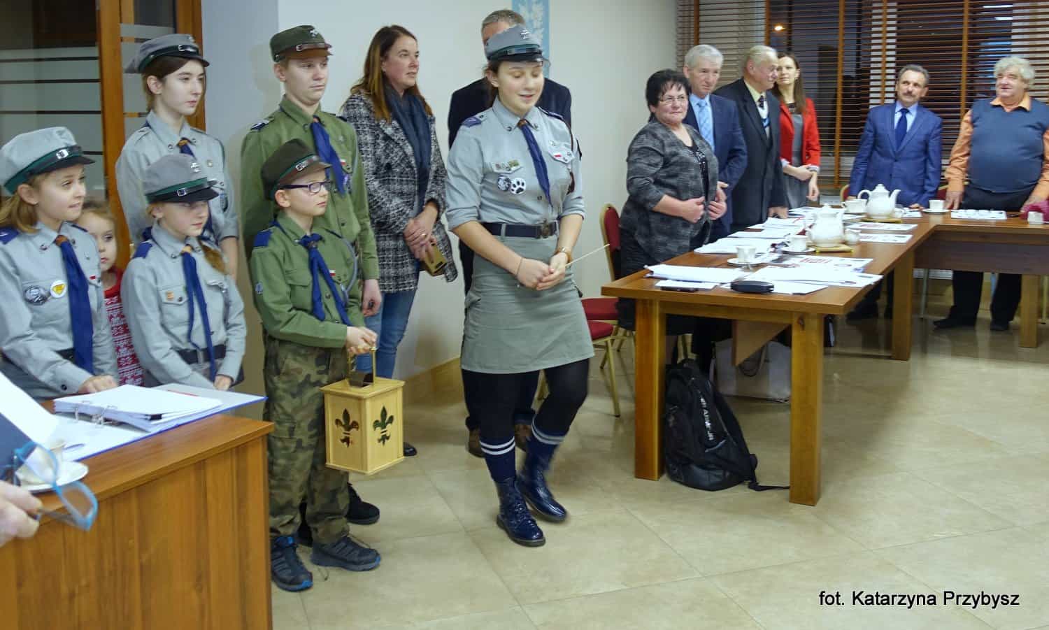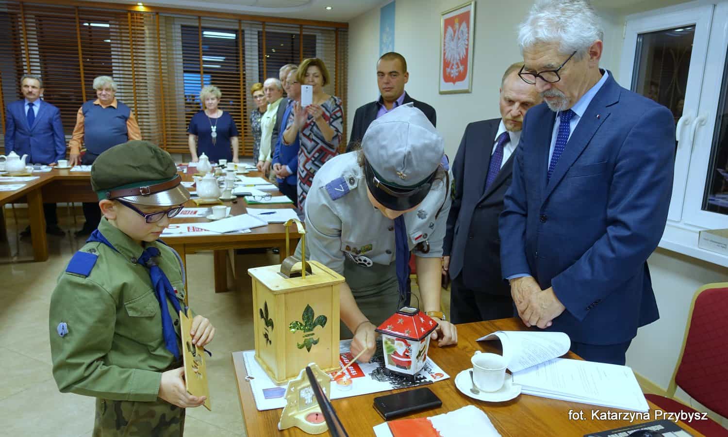 Podczas sesji miało miejsce również uroczyste przekazanie Betlejemskiego Światełka Pokoju przez harcerzy 7 Skockiej Drużyny Harcerskiej „HYCE” na ręce Burmistrza Tadeusz Kłosa i Przewodniczącego Rady Miejskiej Gminy Skoki Zbigniewa Kujawy.