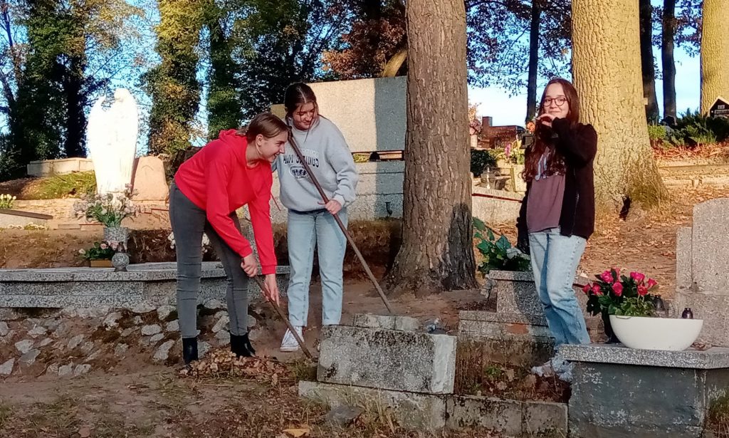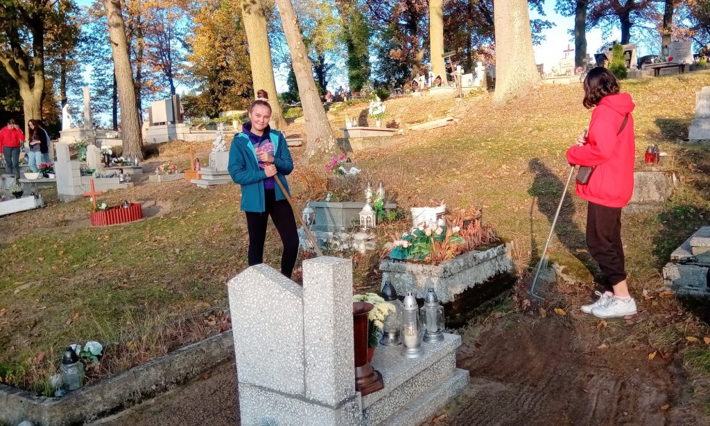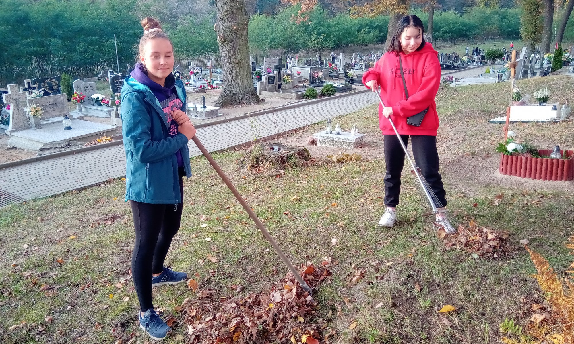 To wolontariusze pod opieką pań Doroty Mrozińskiej i Małgorzaty Zrobczyńskiej, którzy uzbrojeni w grabie, miotły i worki z wielkim zapałem zabrali się do pracy. Porządkowali opuszczone groby. Na koniec uczniowie zapalili znicze upamiętniające tych, którzy odeszli.