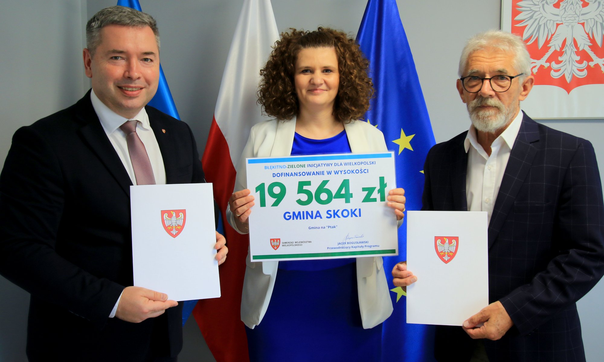 W czwartek, 30 czerwca gminę Skoki odwiedził Jacek Bogusławski Członek Zarządu Województwa Wielkopolskiego aby podpisać umowę na realizację projektu „Gmina na Ptak” w ramach programu „Błękitno – zielone inicjatywy dla Wielkopolski”.