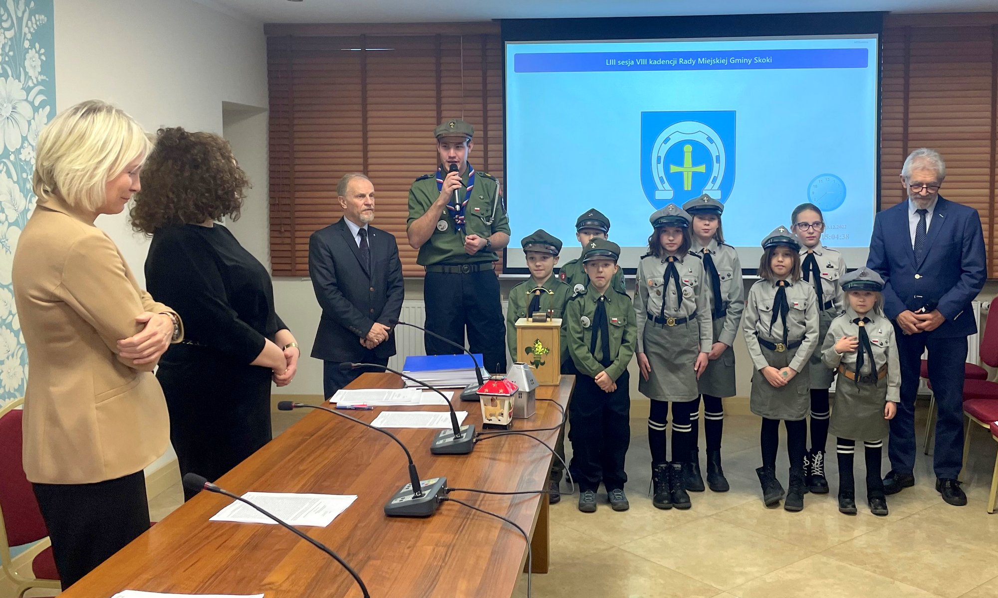 20 grudnia odbyła się 53 sesja Rady Miejskiej Gminy Skoki w trybie nadzwyczajnym. Podczas sesji delegacja skockiej drużyny harcerzy przekazała na ręce Burmistrza Tadeusza Kłosa i Przewodniczącego Rady Zbigniewa Kujawy Światełko Betlejemskie.