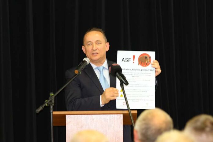 Podczas swojego wystąpienia Wicewojewoda Jarosław Maciejewski zwrócił uwagę, że mamy okres wakacyjny, a co się z tym wiążę większa obecność turystów i urlopowiczów na terenach zagrożonych, którzy nieświadomie mogą przenosić wirus pomiędzy regionami, np. po leśnych wędrówkach czy grzybobraniu. W konsekwencji wirus przedostaje się do okolicznych gospodarstw rolnych. Wicewojewoda podkreślił, że przenoszenie ASF nie musi dotyczyć tylko rolników, dlatego tak ważne jest również podnoszenie świadomości potencjalnego zagrożenia wśród odwiedzających nas gości.