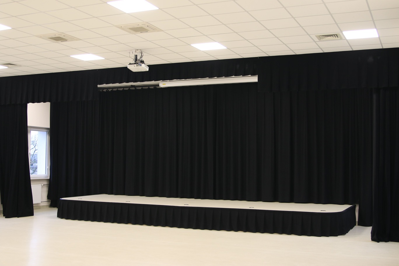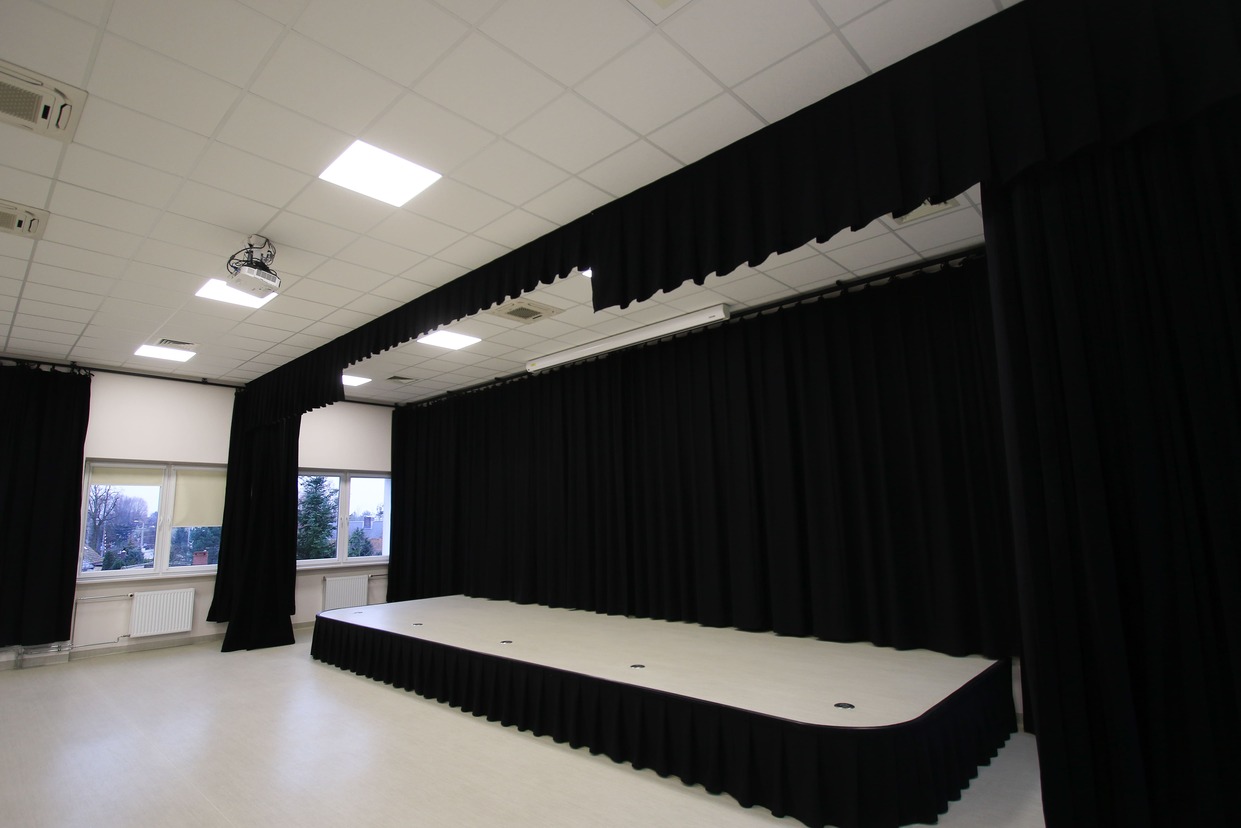 Prace modernizacyjne obejmowały wykonanie nowego sufitu rastrowego na metalowym ruszcie, wypełnionego kasetonami z wełny mineralnej wraz z izolacją termiczną oraz nową instalacją oświetleniową. W celu rozbudowy sali o funkcje widowiskowe zaprojektowano przesłony okien w postaci kurtyn teatralnych, które zamontowano na ręcznych prowadnicach, zgodnych z istniejącą kurtyną sceniczną.