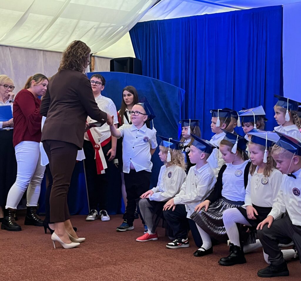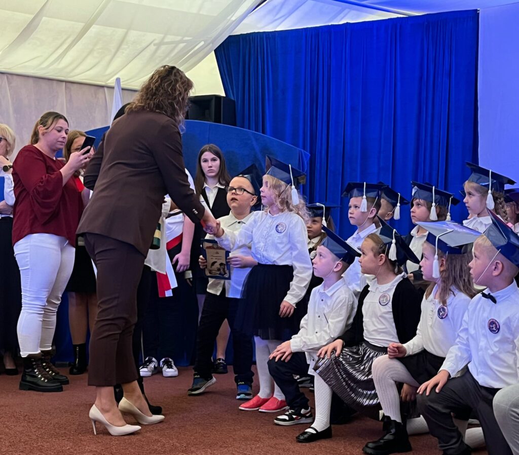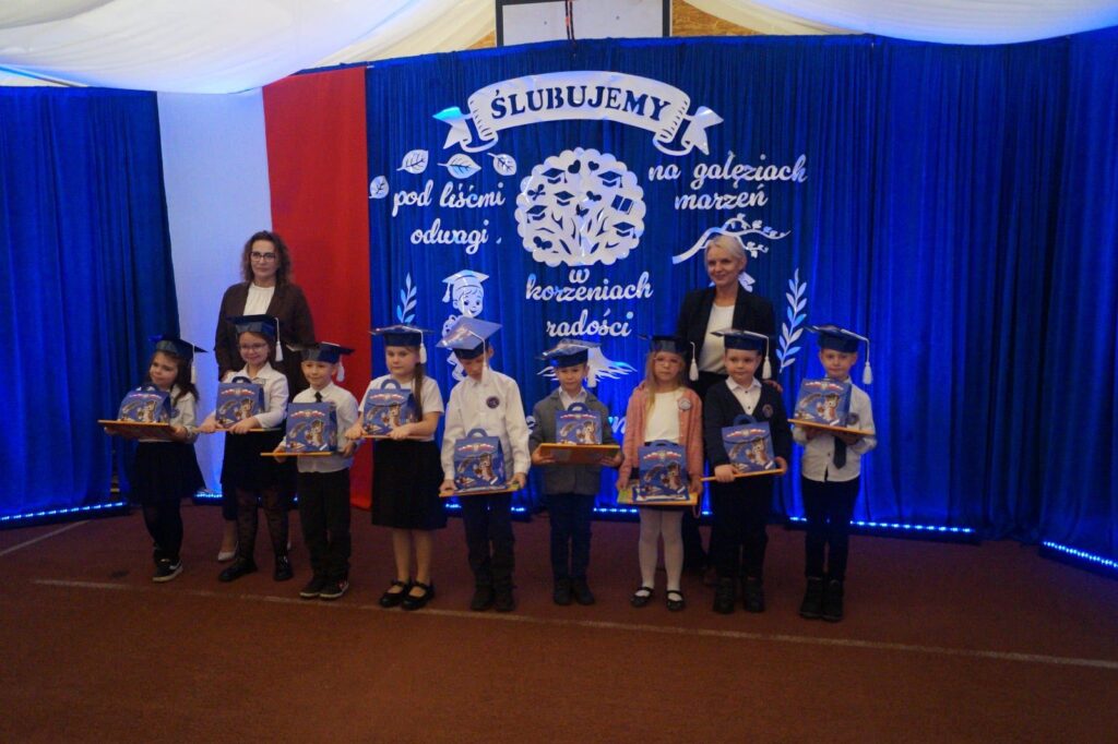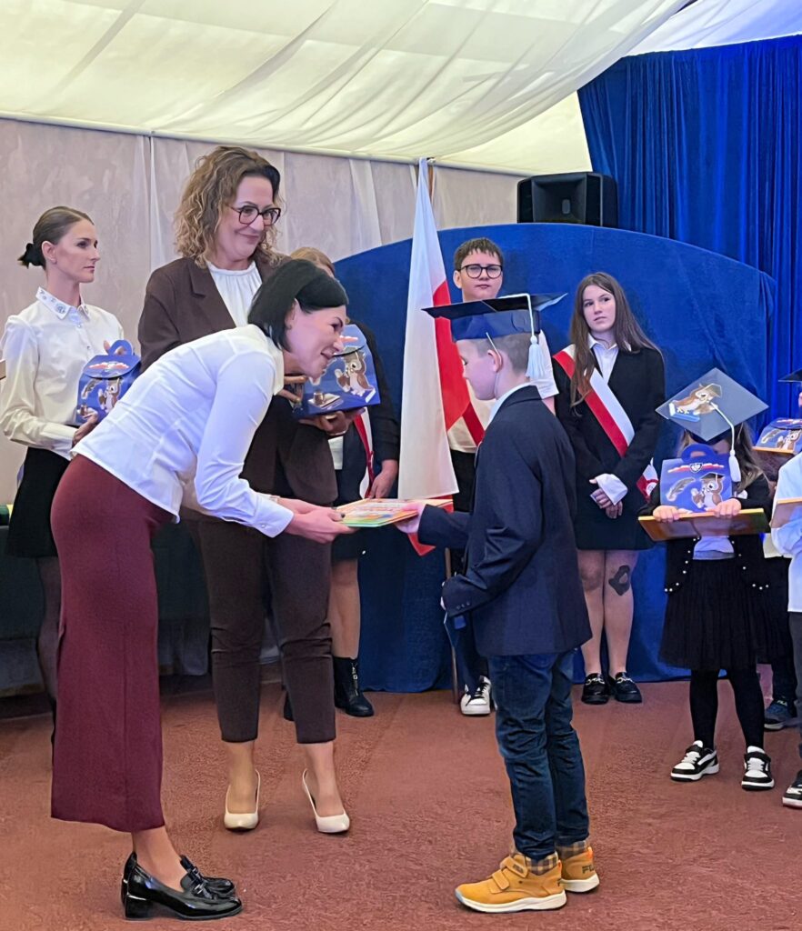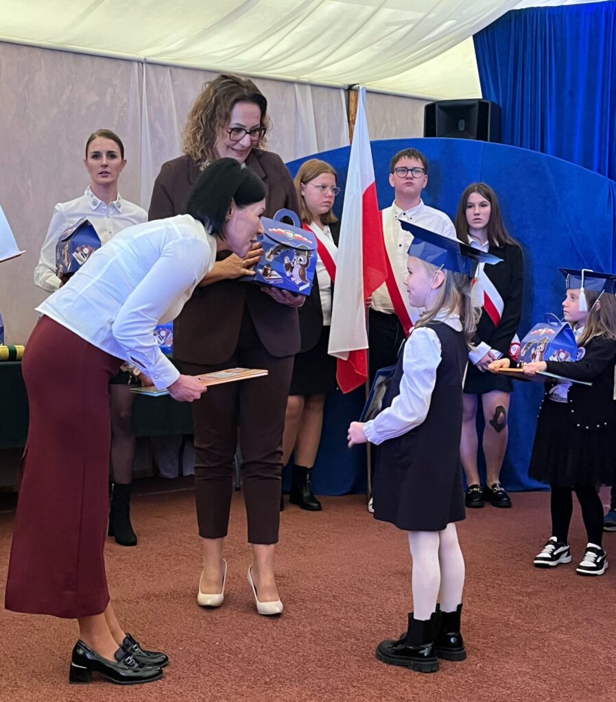Dzieci, które otrzymały pamiątkowe dyplomy, upominki od rodziców oraz książki zakupione przez Urząd Miasta i Gminy w Skokach, z pewnością na zawsze zapamiętają ten dzień. Sekretarz Gminy, Marta Miller, miała zaszczyt wręczyć te cenne prezenty, co nadaje szczególne znaczenie temu ważnemu momentowi.