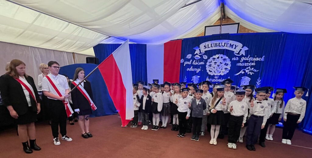 Rok szkolny 2025/2026 zainaugurował wyjątkowe wydarzenie – pasowanie pierwszoklasistów w Szkole Podstawowej w Jabłkowie, z filiami w Rejowcu i Lechlinie. Uroczystość zgromadziła uczniów, którzy zaprezentowali swoje umiejętności w recytacji, śpiewie oraz w zakresie bezpieczeństwa na drodze. Wzruszającym momentem było przysięgnięcie i ślubowanie dzieci w obecności flagi – symbolu Polski, w którym zobowiązały się być pilnymi uczniami i dbać o dobre imię szkoły. Dyrektor Sławomira Kędziora uroczyście pasowała dzieci na uczniów, podkreślając, jak istotny jest to krok w ich edukacyjnym życiu.