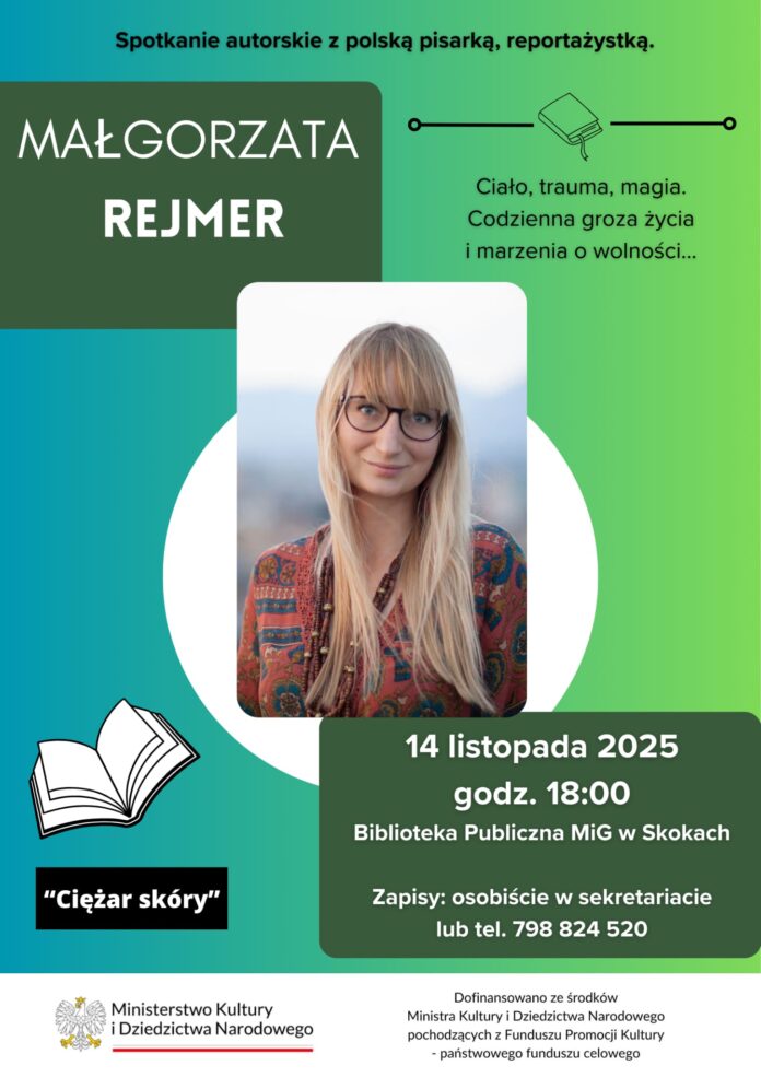 • 𝟭𝟰 𝗹𝗶𝘀𝘁𝗼𝗽𝗮𝗱𝗮, 𝗴𝗼𝗱𝘇. 𝟭𝟴:𝟬𝟬, Spotkanie autorskie z pisarką i reportażystką – 𝗠𝗮ł𝗴𝗼𝗿𝘇𝗮𝘁𝗮̨ 𝗥𝗲𝗷𝗺𝗲𝗿
