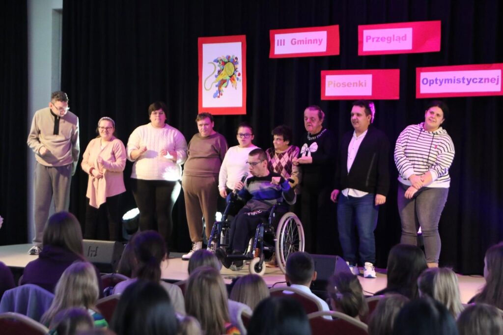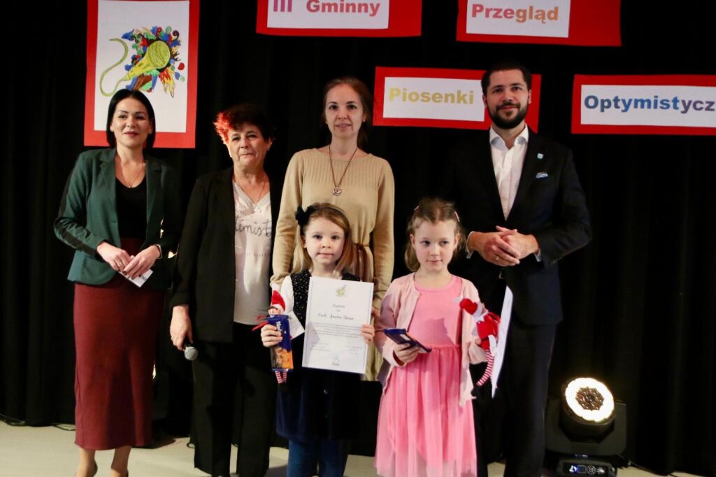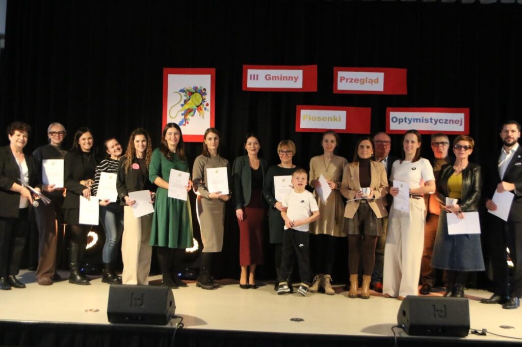 Te piękne słowa zabrzmiały w finałowej piosence Gminnego Przeglądu Piosenki Optymistycznej, który 26 listopada już po raz trzeci zgromadził młodych adeptów sztuki wokalnej chcących nie tylko śpiewać, ale także dzielić się  ze wszystkimi swoim przyjaznym nastawieniem do otaczającego świata.
