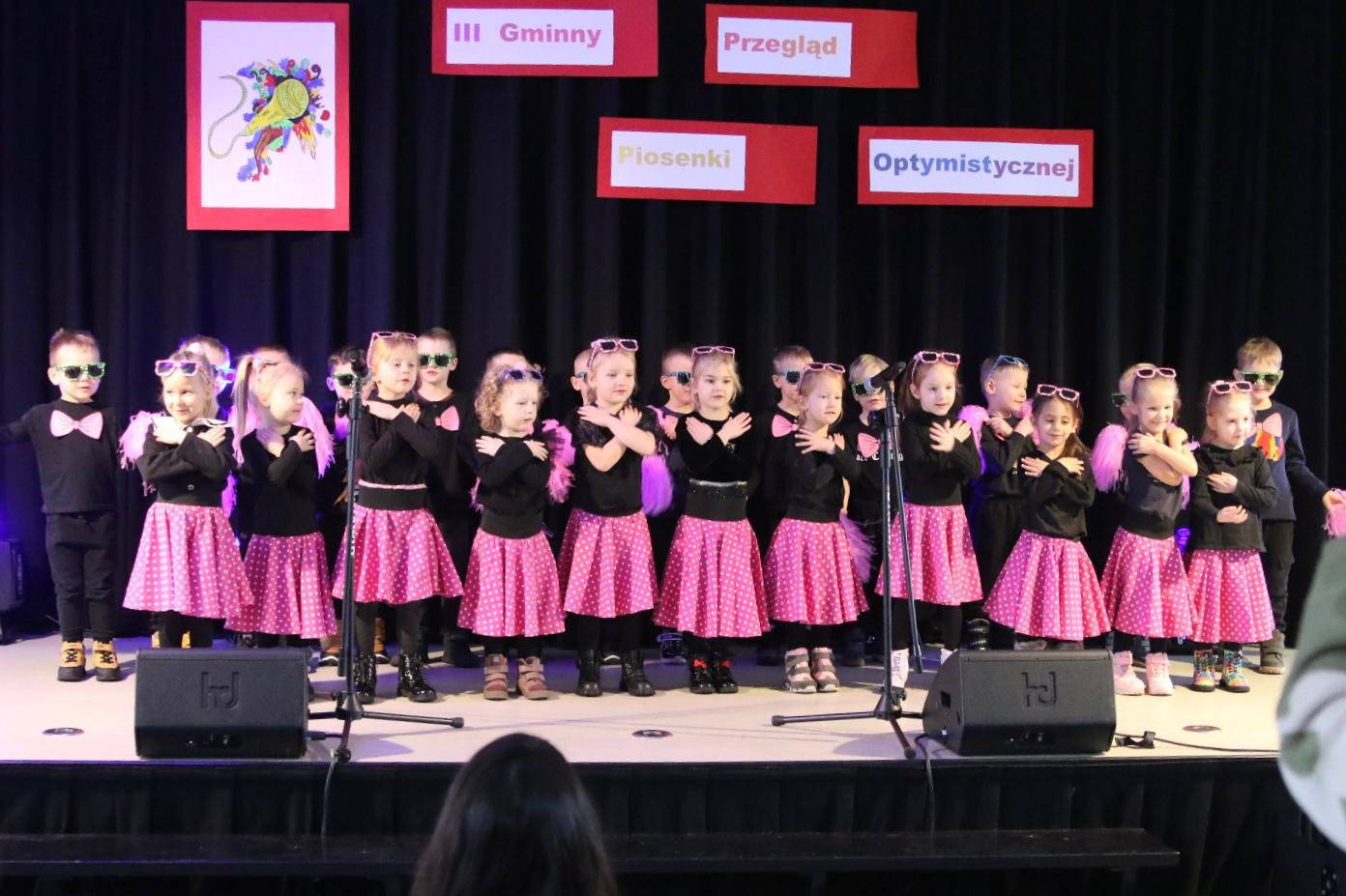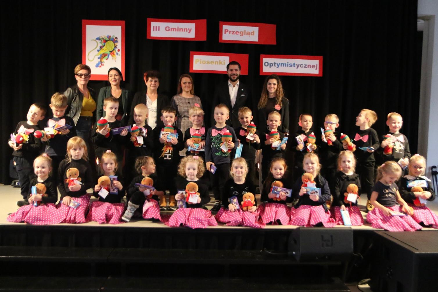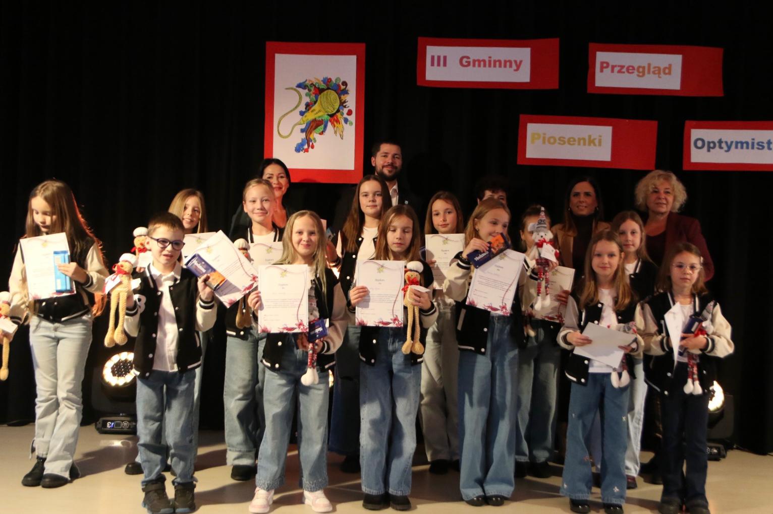 Te piękne słowa zabrzmiały w finałowej piosence Gminnego Przeglądu Piosenki Optymistycznej, który 26 listopada już po raz trzeci zgromadził młodych adeptów sztuki wokalnej chcących nie tylko śpiewać, ale także dzielić się  ze wszystkimi swoim przyjaznym nastawieniem do otaczającego świata.
