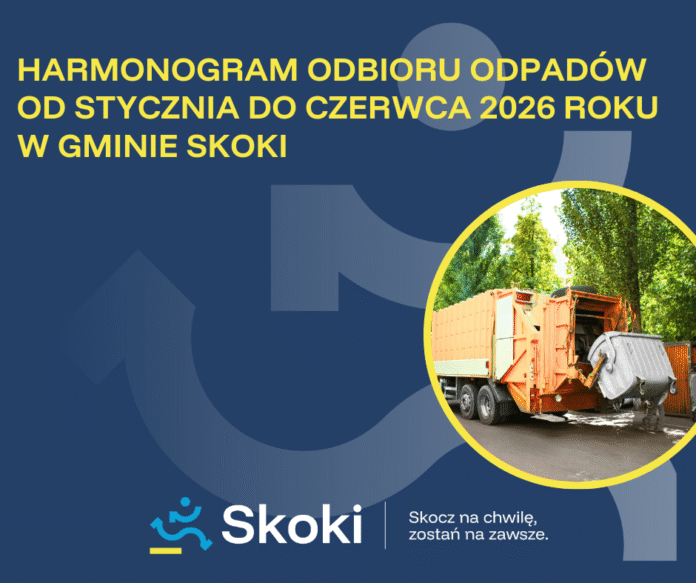 Harmonogram odbioru odpadów od stycznia do czerwca 2026 roku w gminie Skoki