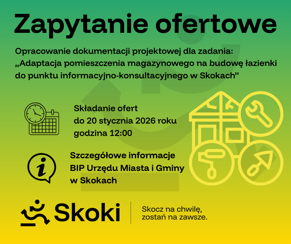 Gmina Skoki ogłasza poszukiwania wykonawcy do zadania, które dotyczy opracowania pełnej dokumentacji projektowej dla adaptacji pomieszczenia magazynowego na budowę łazienki w punkcie informacyjno-konsultacyjnym. Projekt ma na celu poprawienie komfortu korzystania z punktu. Zadanie obejmuje nie tylko stworzenie dokumentacji, ale również pozyskanie wszelkich wymaganych pozwoleń oraz przeprowadzenie niezbędnych uzgodnień, co zapewni zgodność z obowiązującymi normami i regulacjami.