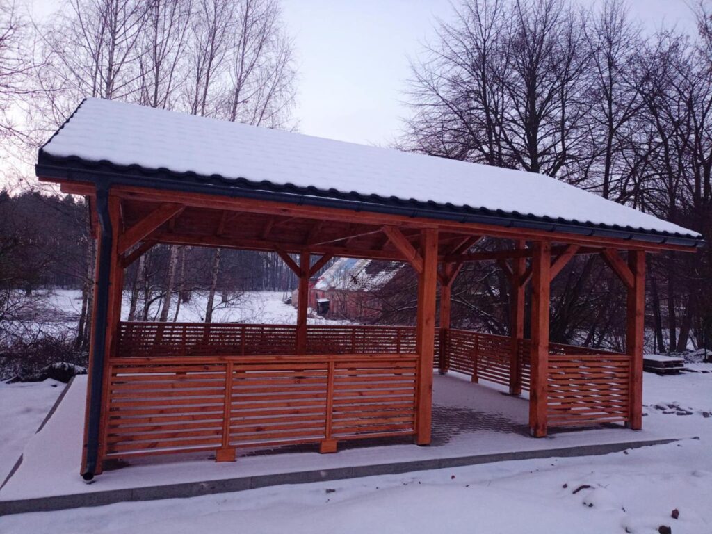 Wymiary nowych wiat to 5 metrów na 7 metrów, a ich wysokość wynosi 4,20 metra, co daje łączną powierzchnię użytkową 35 m². Obiekt jest pokryty blachodachówką z zamontowanym systemem orynnowania, który skutecznie odprowadza wodę deszczową. W ramach prac budowlanych utwardzono także podłoże z kostki betonowej o powierzchni 48 m², posadowione na fundamentach żelbetowych sięgających 80 cm w głąb gruntu.