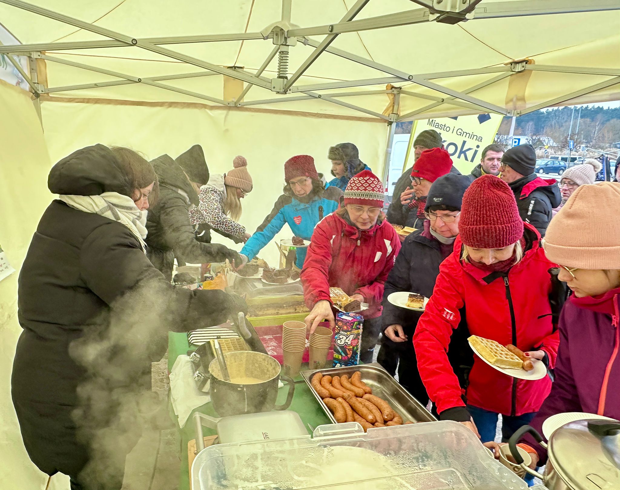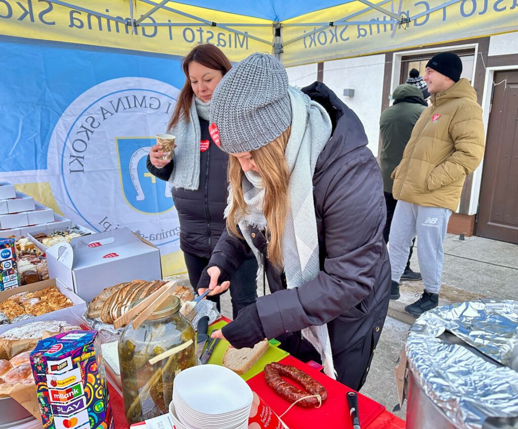 W Skokach co roku przed Finałem Wielkiej Orkiestry Świątecznej Pomocy miały miejsce wyjątkowe wydarzenia, które łączą lokalną społeczność w szczytnym celu. W tym roku pracownicy Urzędu Miasta i Gminy w Skokach po raz siódmy zaangażowali się w organizację stoiska na targowisku, oferując mieszkańcom pyszne zimowe smakołyki, takie jak herbata, kawa, ciasta i tradycyjne dania jak bigos czy chleb ze smalcem. Dzięki temu mieszkańcy mieli możliwość wrzucenia dobrowolnych datków do puszki WOŚP, a uzbierane pieniądze wsparły tegoroczny cel zbiórki – „Zdrowe brzuszki naszych dzieci”.