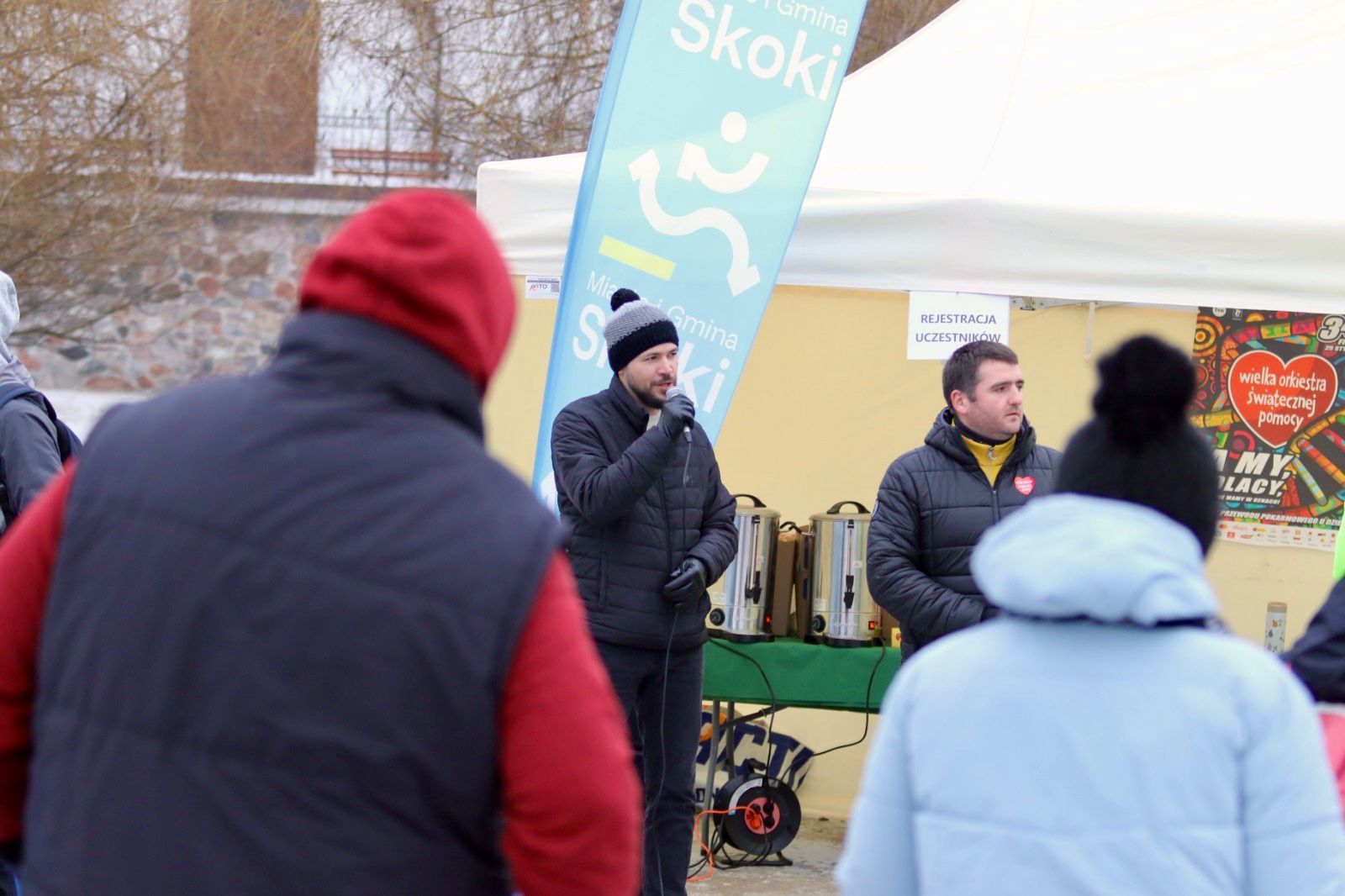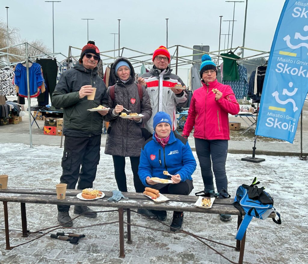 Równocześnie na targowisku odbyło się także znane mieszkańcom Skoków i okolic wydarzenie sportowe „Aktywnie po zdrowie z WOŚP”. Pomimo trudnych warunków atmosferycznych, w akcji wzięło udział aż 75 osób, które nie tylko wspierały zbiórkę, ale także starały się promować zdrowy styl życia. Uczestnicy mieli do wyboru różnorodne dystanse, w tym 25 km na rowerze, biegi na 10 km oraz marsze Nordic Walking na 7 i 16 km. Zaangażowanie uczestników, to wyśmienity przykład na to, jak można łączyć aktywność fizyczną z charytatywną pomocą.