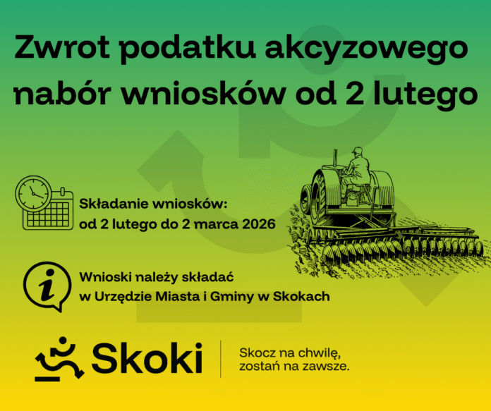 Producenci rolni mają szansę na odzyskanie części wydatków związanych z zakupem oleju napędowego przeznaczonego do produkcji rolnej. Zgodnie z obowiązującymi przepisami, wniosek o zwrot podatku akcyzowego, który jest zawarty w cenie oleju, można składać do Burmistrza Miasta i Gminy Skoki w ściśle określonym terminie – od 2 lutego do 2 marca 2026 roku. Aby skutecznie ubiegać się o zwrot, ważne jest dołączenie faktur VAT, które stanowią dowód zakupu oleju napędowego w okresie od 1 sierpnia 2025 roku do 31 stycznia 2026 roku. Stawka zwrotu podatku akcyzowego wynosi 1,48 zł za każdy litr oleju napędowego.