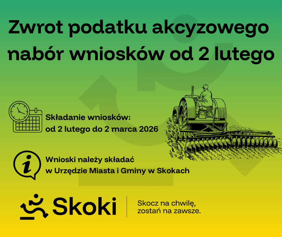 Wnioski przyjmowane będą w Urzędzie Miasta i Gminy w Skokach, pokój nr 2 (wejście A od ul. W. Ciastowicza 11).