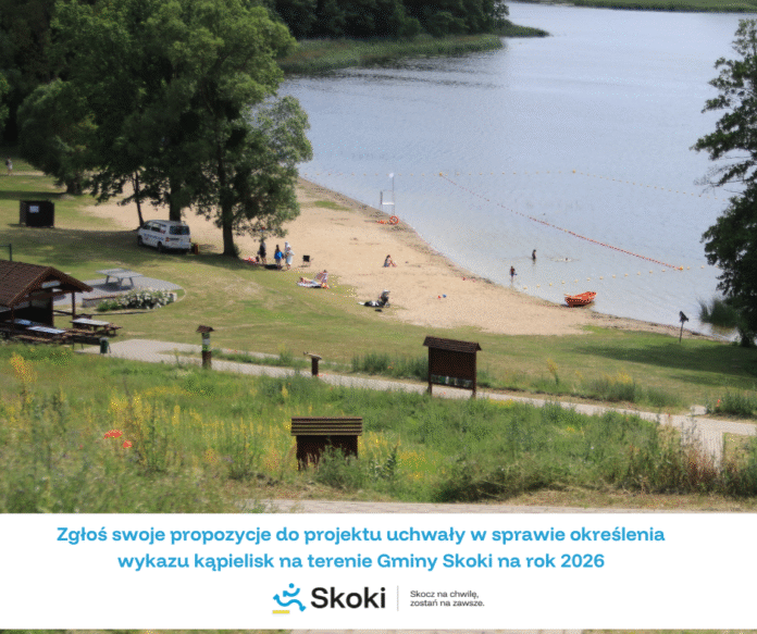 Projekt uchwały w sprawie określenia wykazu kąpielisk na terenie Gminy Skoki na rok 2026 oraz określenia sezonu kąpielowego – zgłoś swoje propozycje oraz uwagi