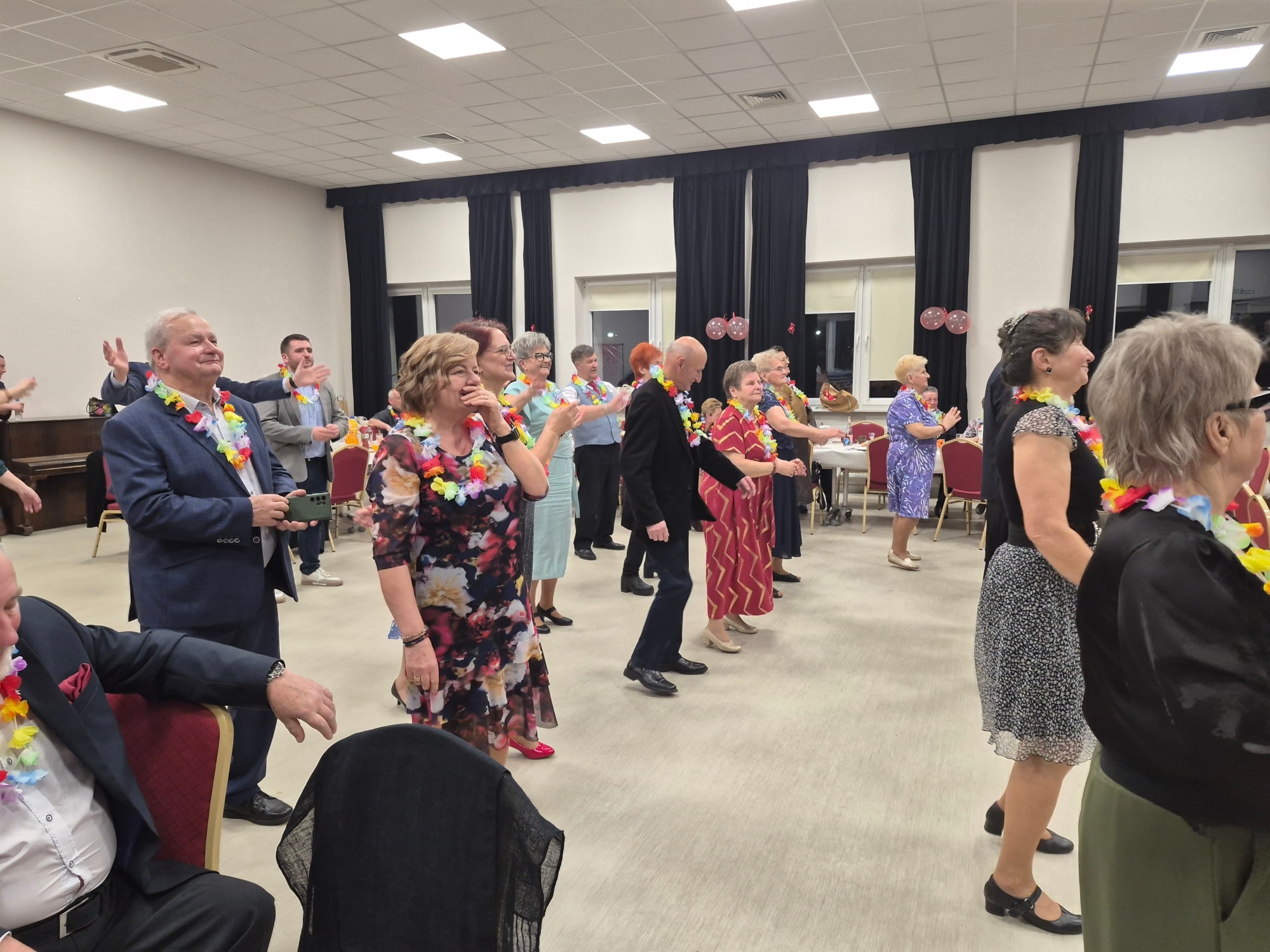 Po części artystycznej przyszedł czas na warsztaty taneczne. Uczestnicy balu z dużym entuzjazmem uczyli się podstawowych kroków i gestów hula, a wspólna aktywność dostarczyła wielu pozytywnych emocji. Najaktywniejsi seniorzy zostali wyróżnieni upominkami.