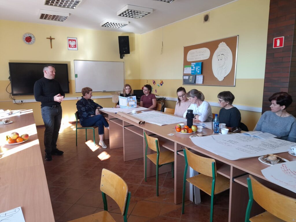 Szkolenie przeprowadził trener z Centrum Działań Profilaktycznych z Wieliczki pan Dawid Droździkowski, a uczestnicy szkolenia zostali wyposażeni w pakiety edukacyjne do realizacji programu.