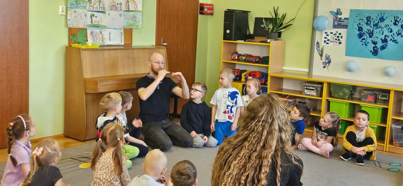 Podczas piątkowych zajęć pięknie poradzili sobie z rozpoznawaniem trudnej emocji jaką jest frustracja, a w jej omówieniu pomogli przedszkolakom prowadzący zajęcia psycholodzy – trenerzy z Centrum Działań Profilaktycznych pani Dominika Wojtera i Maciej Barczak.