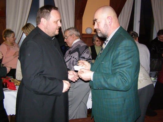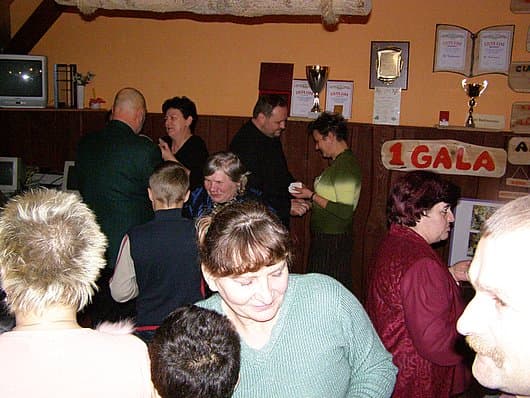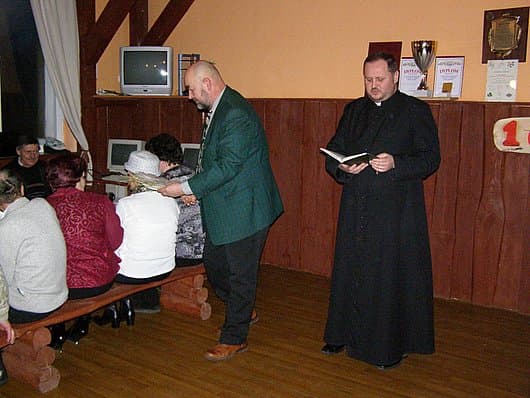 Mieszkańcy staropolskim zwyczajem podzielili się opłatkiem, oraz zasiedli wspólnie do stołu, na którym znalazł się min. wspaniały tort ufundowany mieszkańcom wsi przez Burmistrza Tadeusza Kłosa.