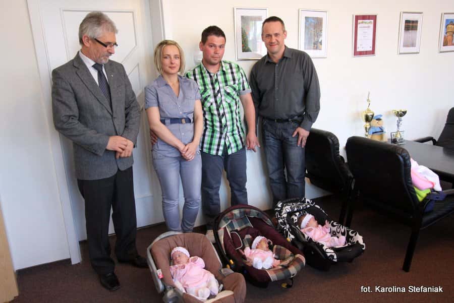 Niecodziennych gości miał w dniu 20 kwietnia w swoim gabinecie burmistrz Tadeusz Kłos. Mowa o trzech młodych damach o imionach: Amelia, Klaudia i Paulina, które przyszły na świat 2 lutego i są mieszkankami naszej Gminy. Powodem do tej wizyty w raz ze szczęśliwymi rodzicami było przekazanie kluczy do lokalu mieszkalnego przy ul. Poznańskiej 2. Mieszkanie to przyznane zostało Wioletcie i Przemysławowi Trzeciakom.