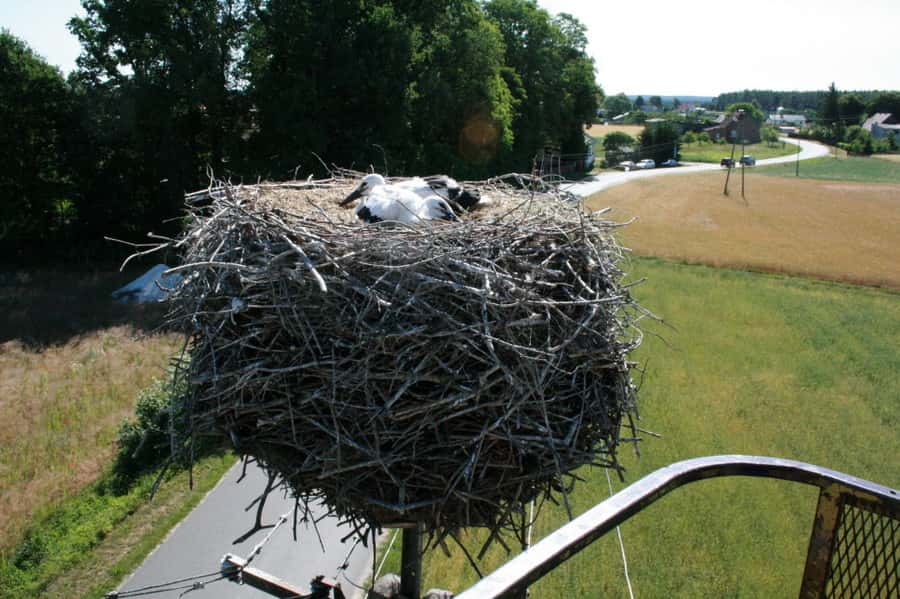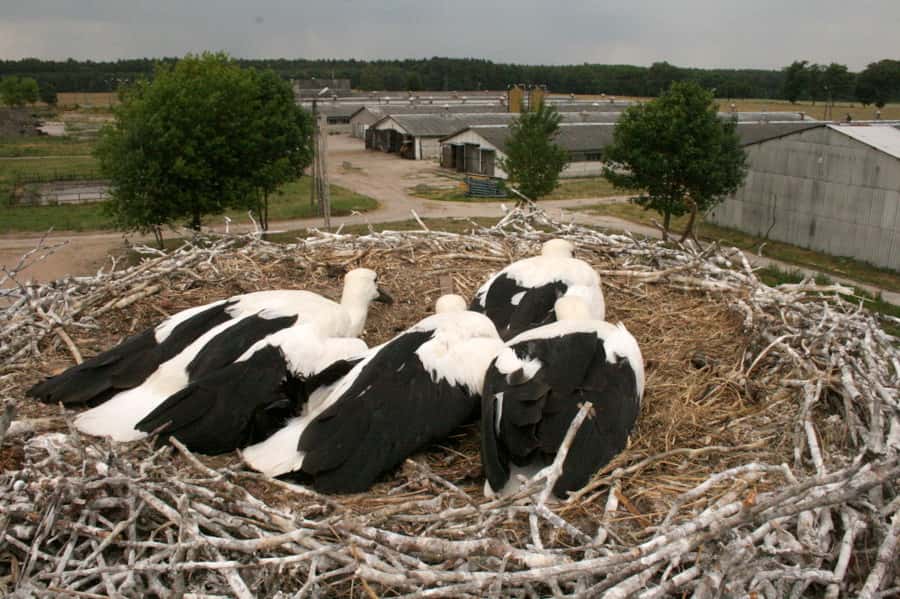 W dniach 28 i 30 czerwca zaobrączkowaliśmy 12 młodych bocianów białych. W gniazdach w Sławicy i Potrzanowie po dwa ptaki, oraz w Lechlinie i Łosińcu po cztery ptaki. Do gniazd wjechaliśmy w koszu dzięki uprzejmości firmy energetycznej, która w tych miejscach wykonywała drobne prace naprawcze.