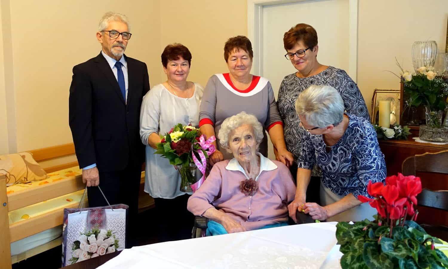 19 października tego roku Pani Marianna Gołembowska zamieszkała w Skokach obchodziła Jubileusz 97 urodzin. Z tej okazji gratulacje, drobny upominek oraz najlepsze życzenia urodzinowe osobiście złożył Burmistrz Miasta i Gminy Skoki Tadeusz Kłos wraz z Kierownikiem Urzędu Stanu Cywilnego Joanną Wolicką-Przywarty. Spotkanie przebiegało w miłej, pełnej wspomnień atmosferze.