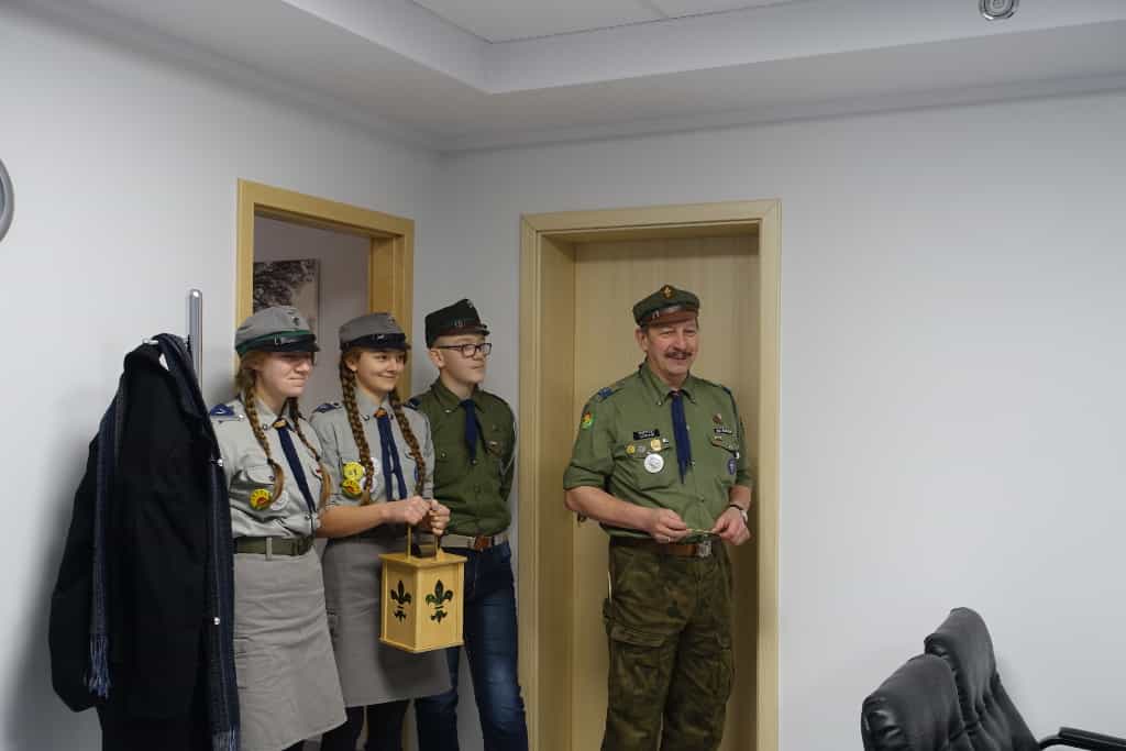 22 grudnia do Urzędu Miasta i Gminy Skoki zawitali harcerze 7SDH „Hyce” z drużynowym harcmistrzem Andrzejem Surdykiem przynosząc – już po raz dwudziesty szósty – burmistrzowi Tadeuszowi Kłosowi oraz radnym Betlejemskie Światełko Pokoju jako symbol ciepła, miłości, pokoju i nadziei.