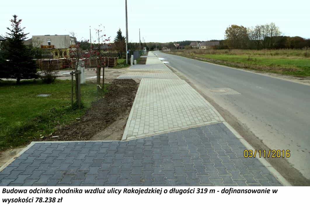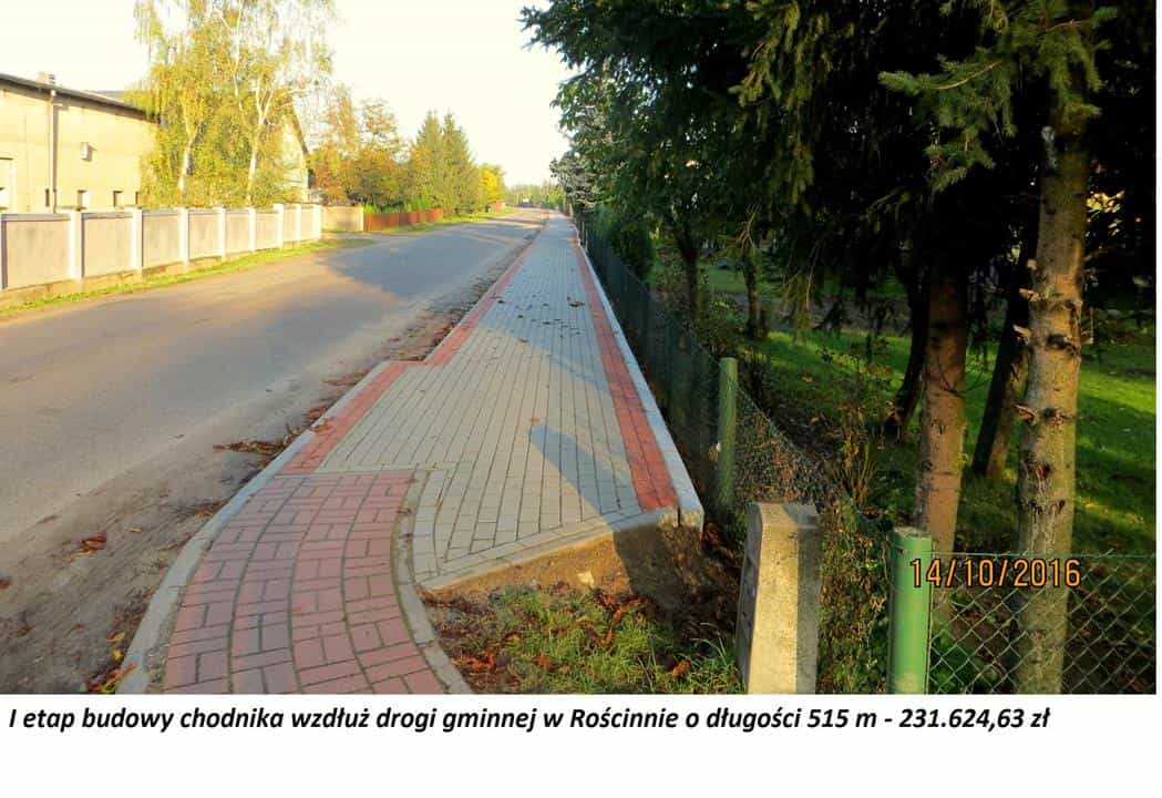 W 2016 roku prawie wszystkie zaplanowane inwestycje zostały wykonane z powodzeniem. Jedynie przebudowa ulicy Przylesie oraz z oświetleniem oraz opracowanie dokumentacji budowlanej na instalację gazową centralnego ogrzewania i ciepłej wody w budynku ośrodka zdrowia zostały przeniesione do realizacji w bieżącym roku. Zaś budowa obiektu na cele kulturalne w Roszkowie została odroczona.