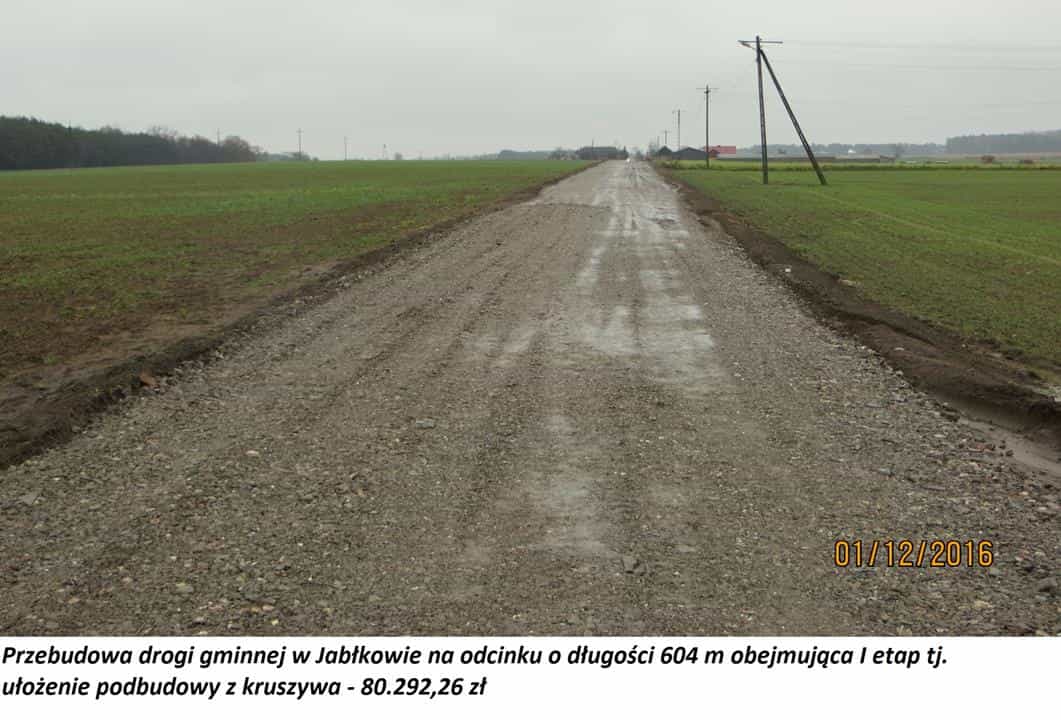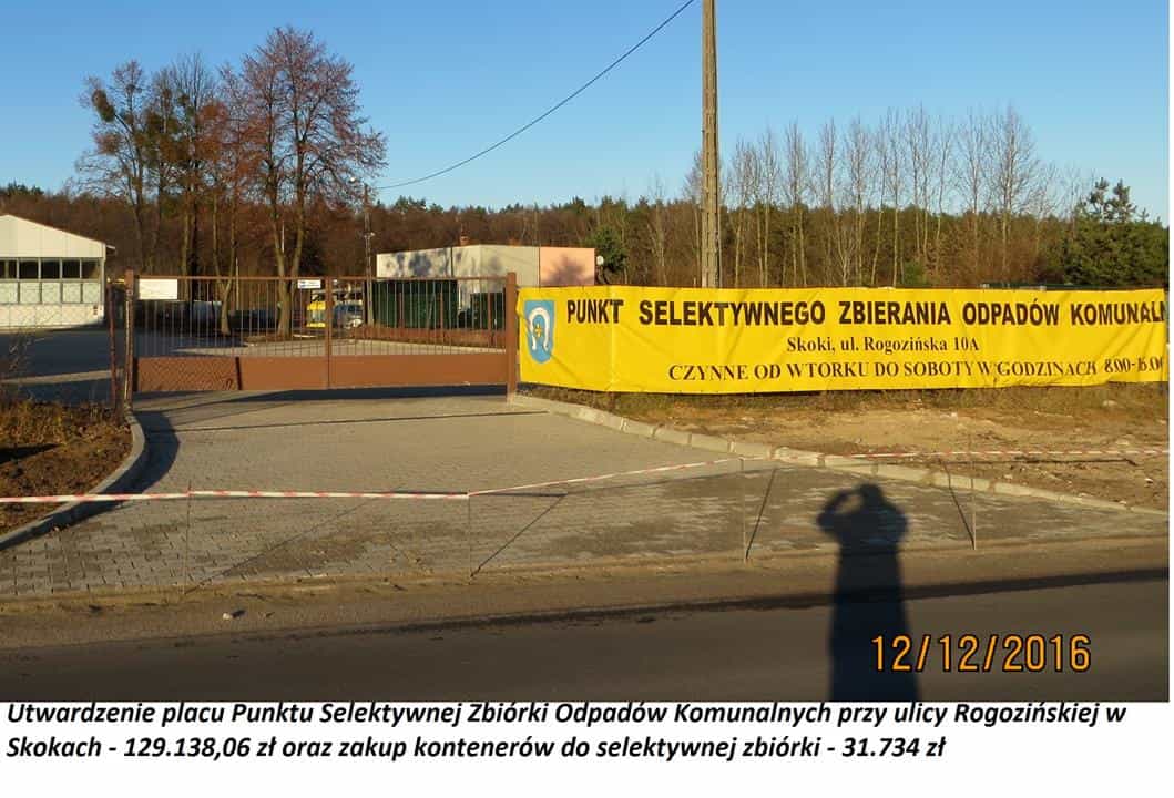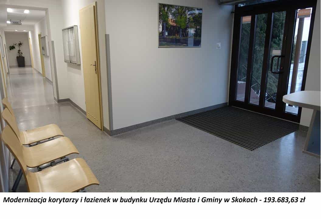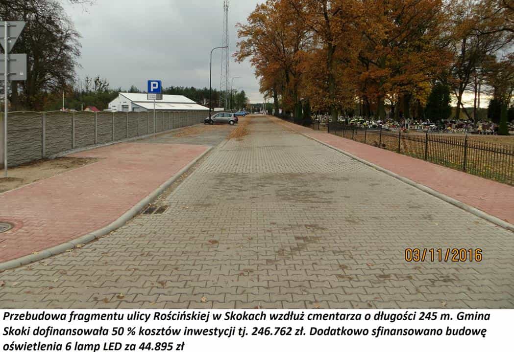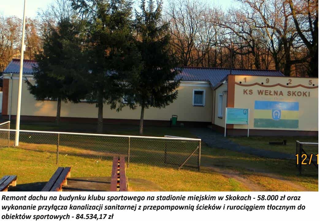 Prawie 1 mln 650 tysięcy gmina wydała na przebudowy dróg gminnych wraz z kanalizacją deszczową i chodnikami. W sumie przebudowano 4 678 metrów długości dróg, w tym tylko 417 metrów stanowi droga w Skokach.